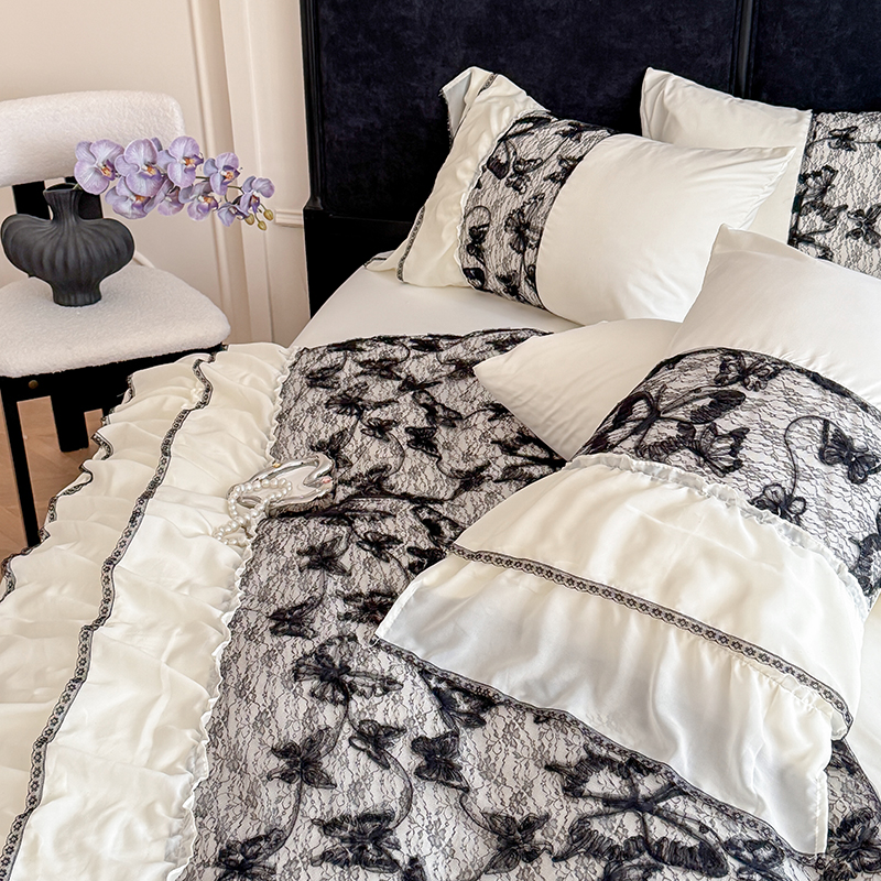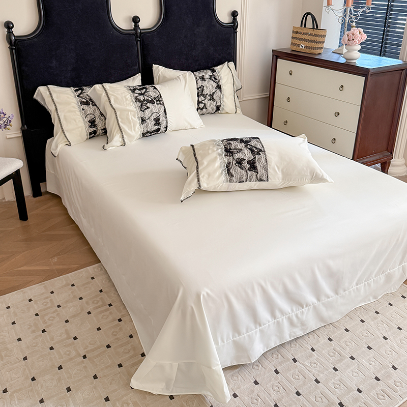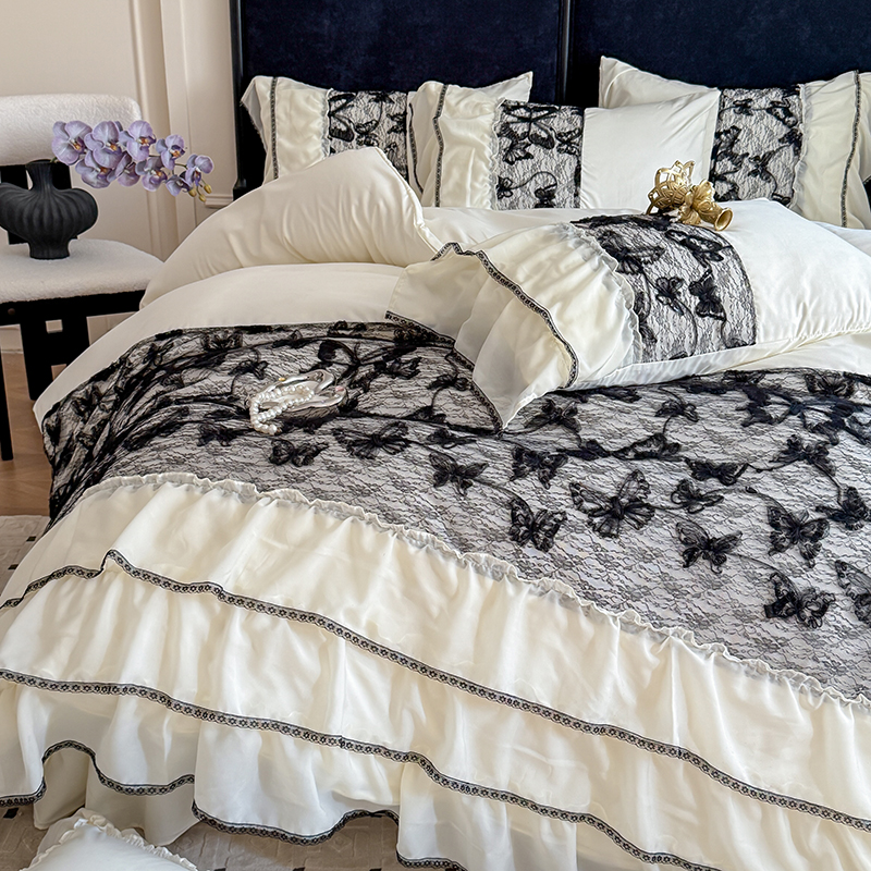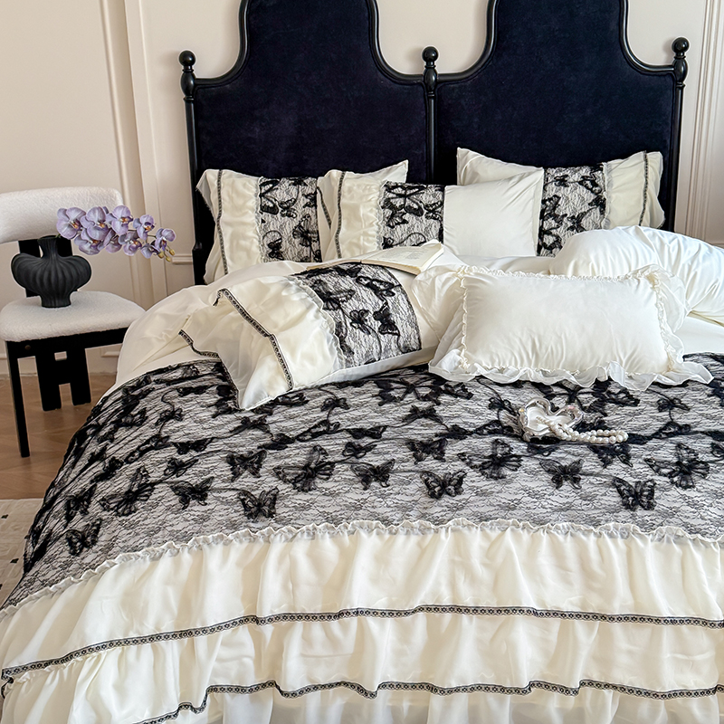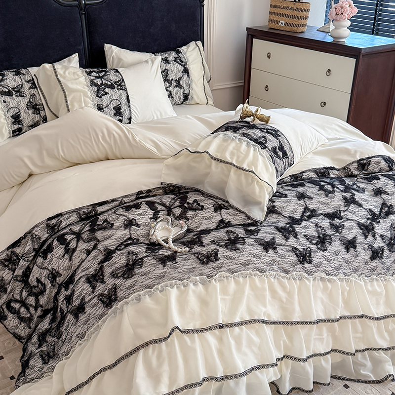 商品名称:吾欢心 2025新款糯小棉立体绣花雪纺花边四件套-蝴蝶梦 蝴蝶梦-白