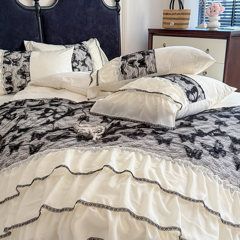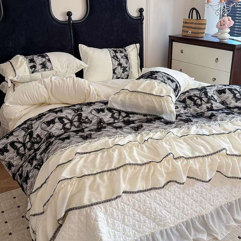 吾欢心 2025新款糯小棉立体绣花雪纺花边四件套-蝴蝶梦 蝴蝶梦-白