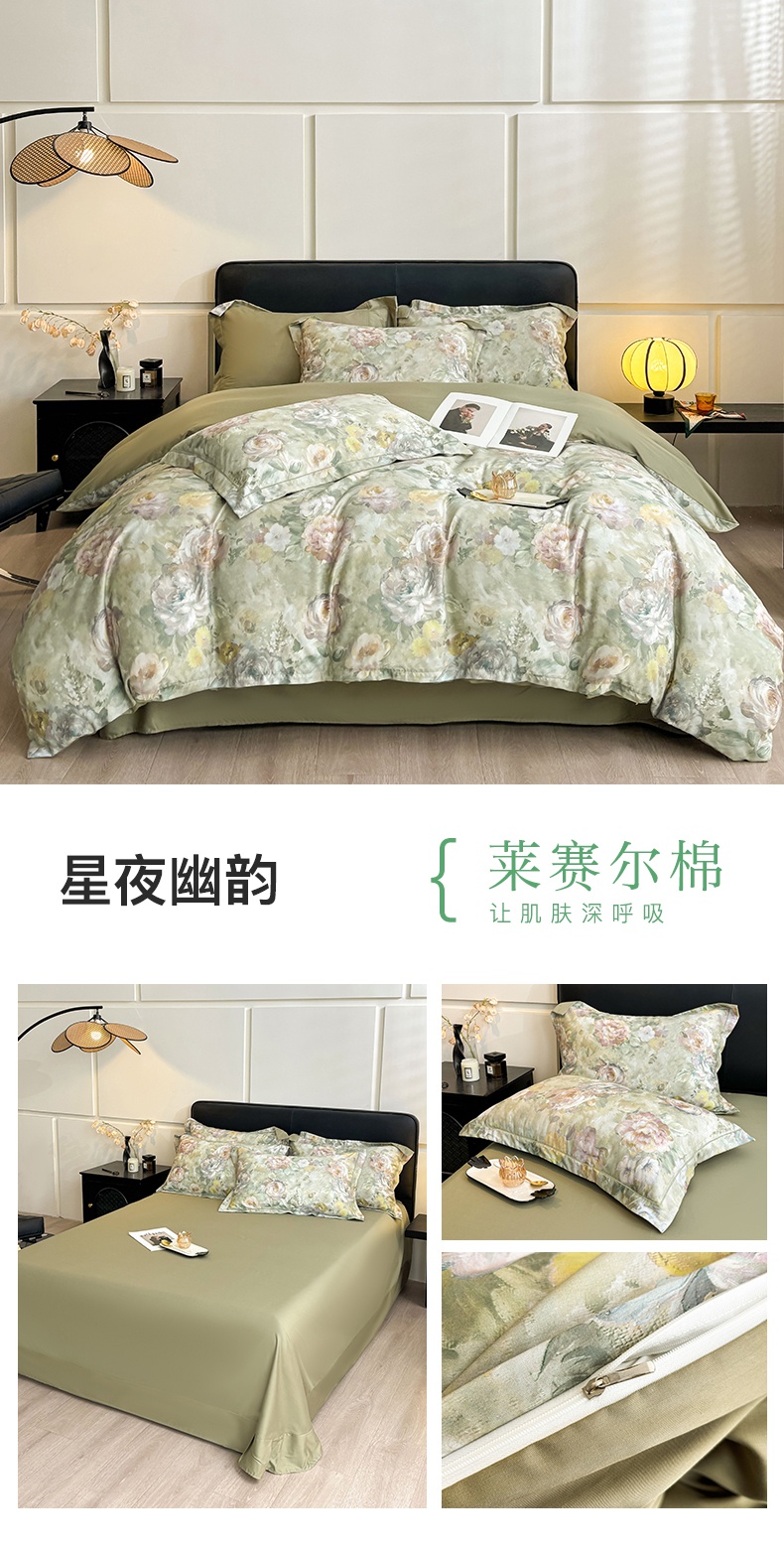 (总) 帛美家纺 2025新款40支莱赛尔天丝印花四件套(提供买家秀),花香丽影,妮可,秋色如梦,云梦,云水遥,安静别闹,碧柳,流光影,奶油蔷薇,千山翠,优雅日光