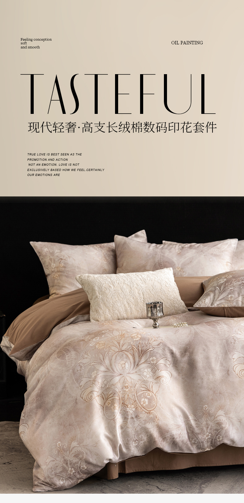 立奥被业 2025新款60S数码印花四件套四件套 曼希-咖