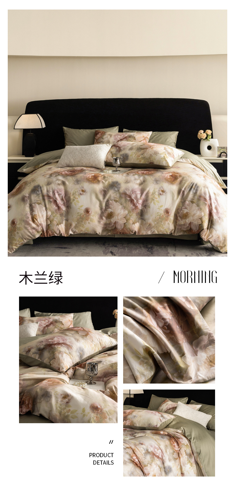 商品名称:立奥被业 2025新款60S数码印花四件套四件套 木兰绿
