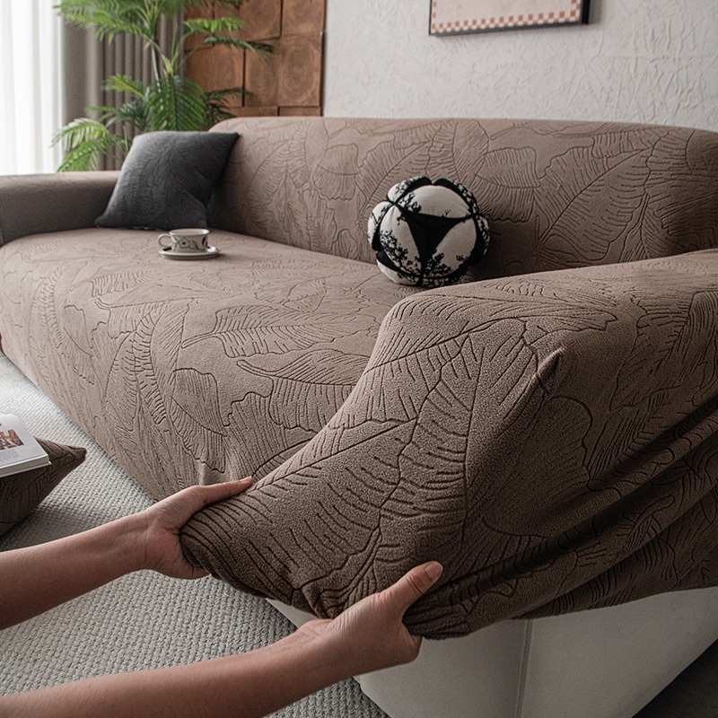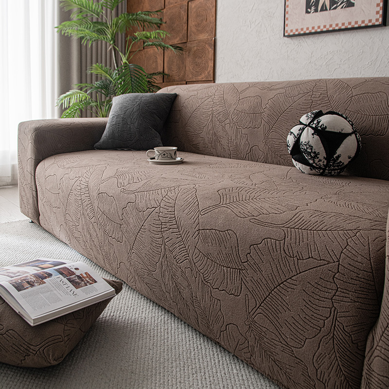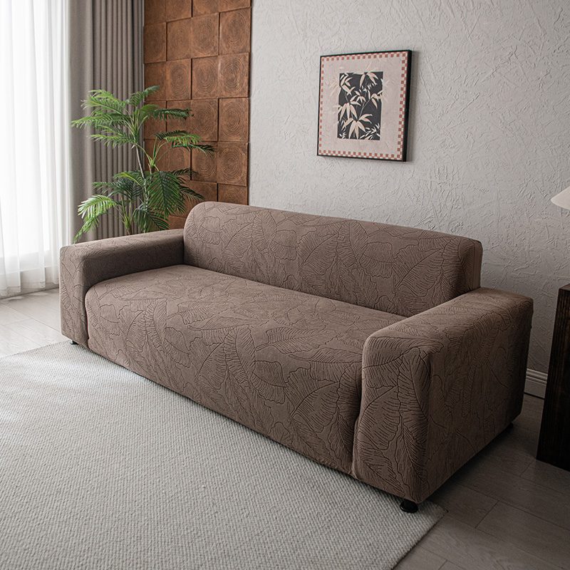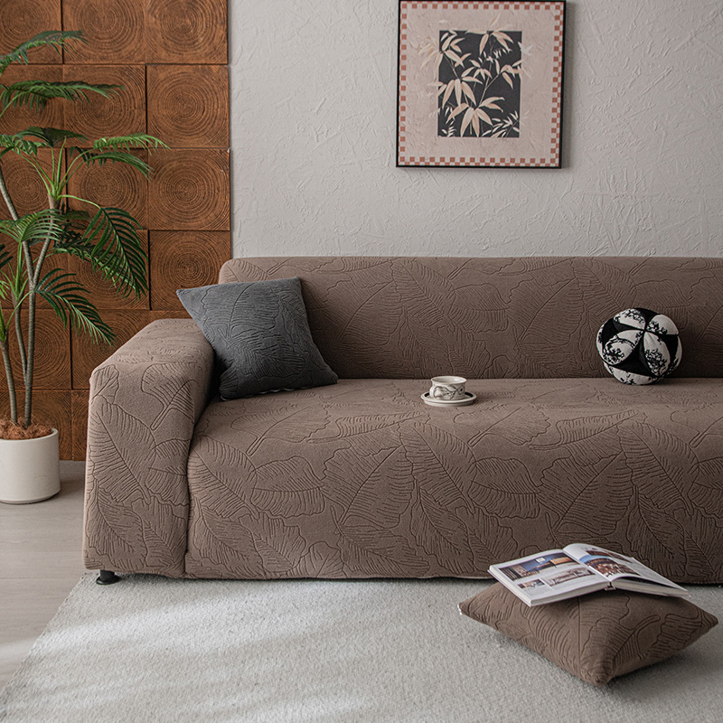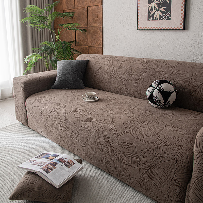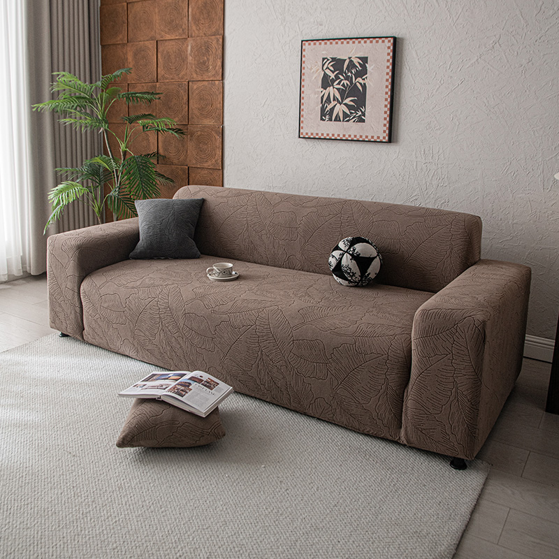 商品名称:逐日沙发套 2025新款提花绒沙发套-叶沙 咖色