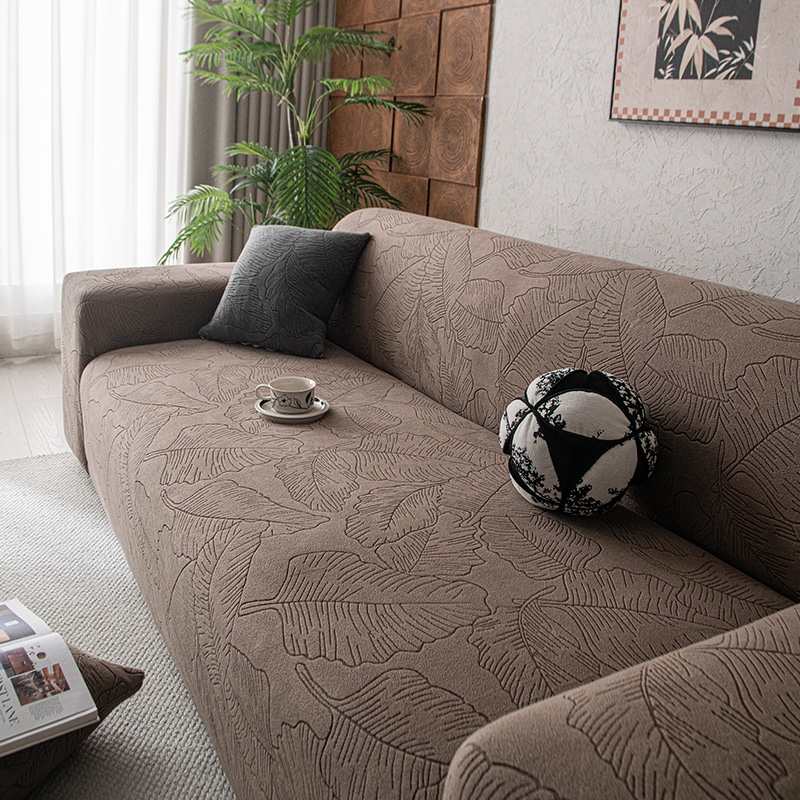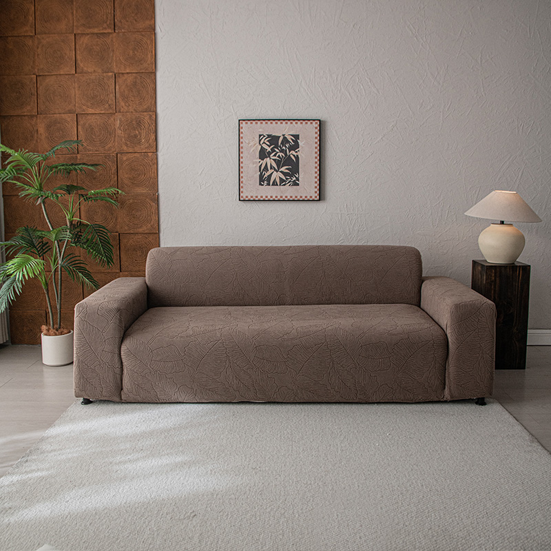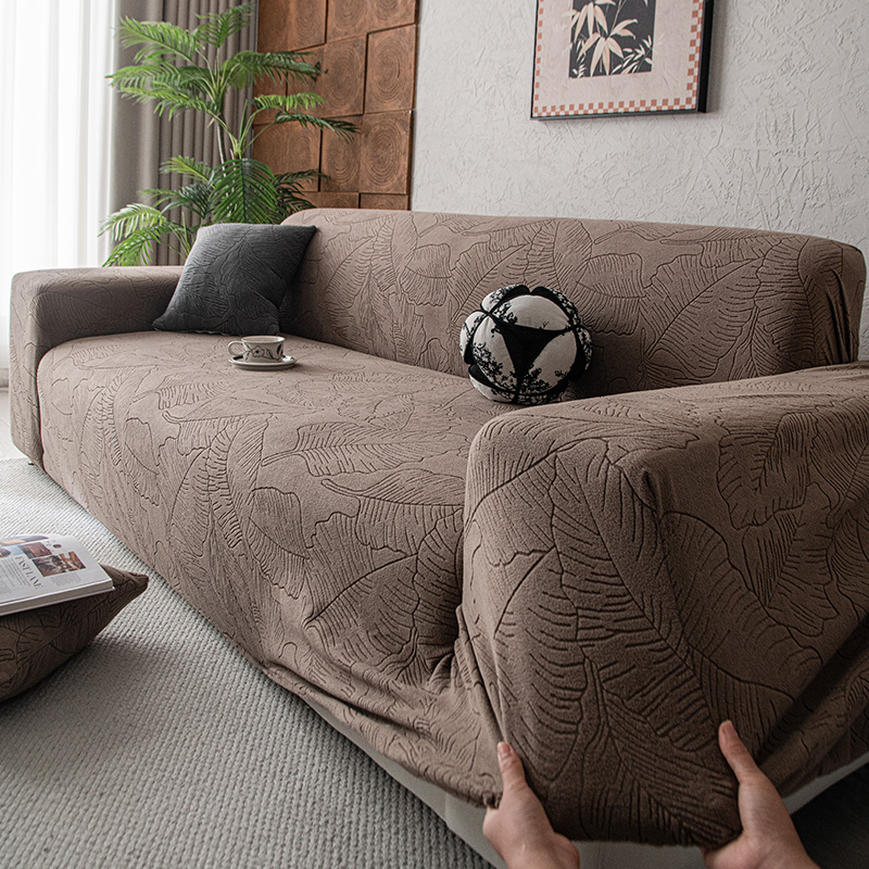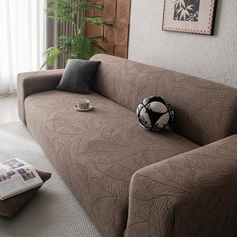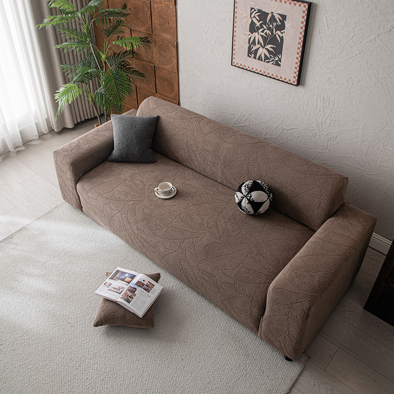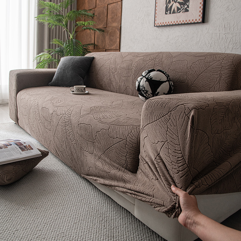 商品名称:逐日沙发套 2025新款提花绒沙发套-叶沙 咖色