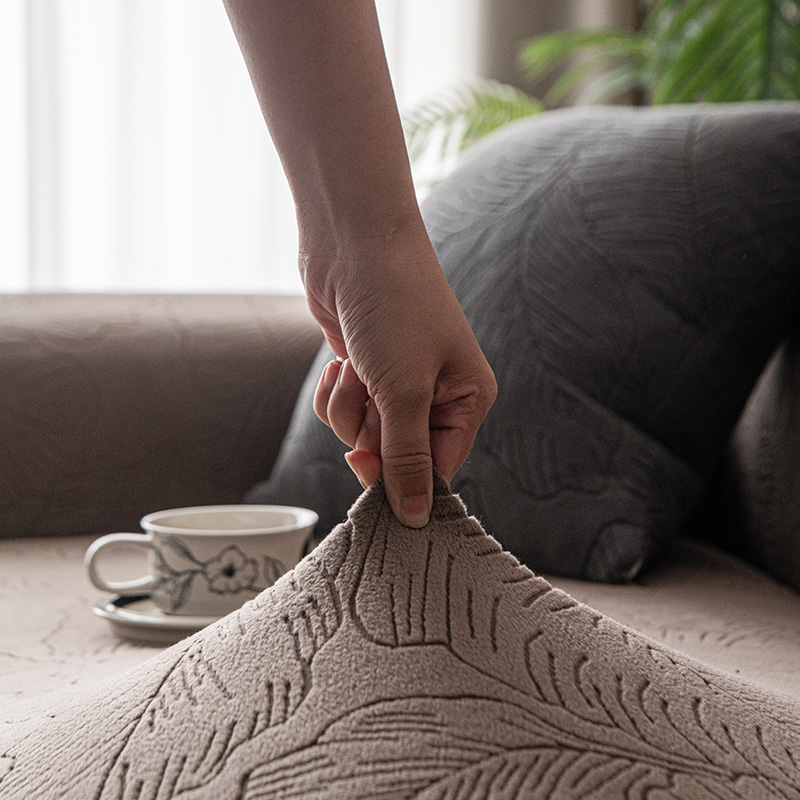 逐日沙发套 2025新款提花绒沙发套-叶沙 咖色