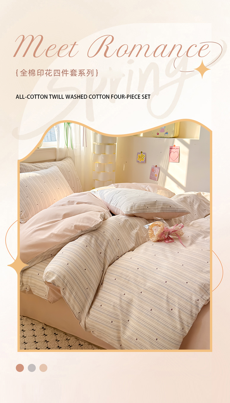 当前位置: 91家纺网 > 商品网购 > 床品套件 > 四件套 > 全棉普通四件套 > 清雅福 2025全棉13372小清新四件套和单被套早春系列第二批--四件套 渡心