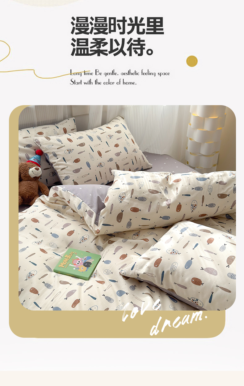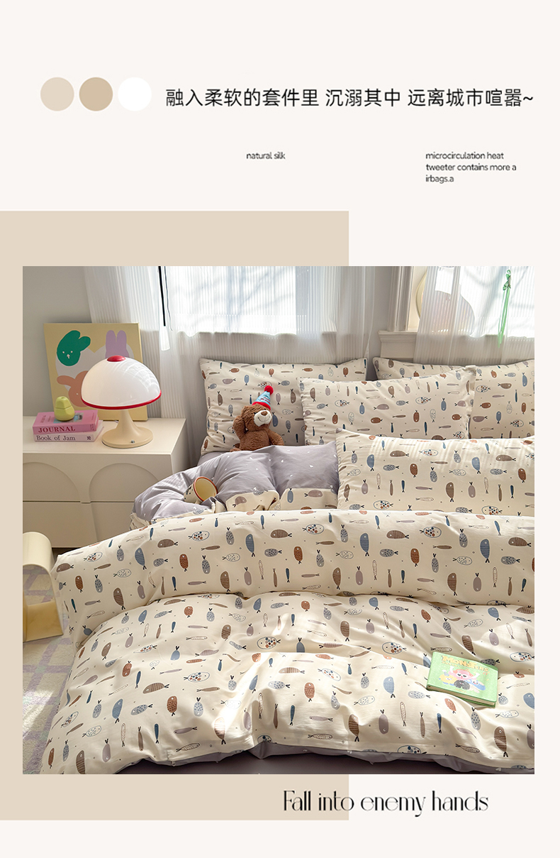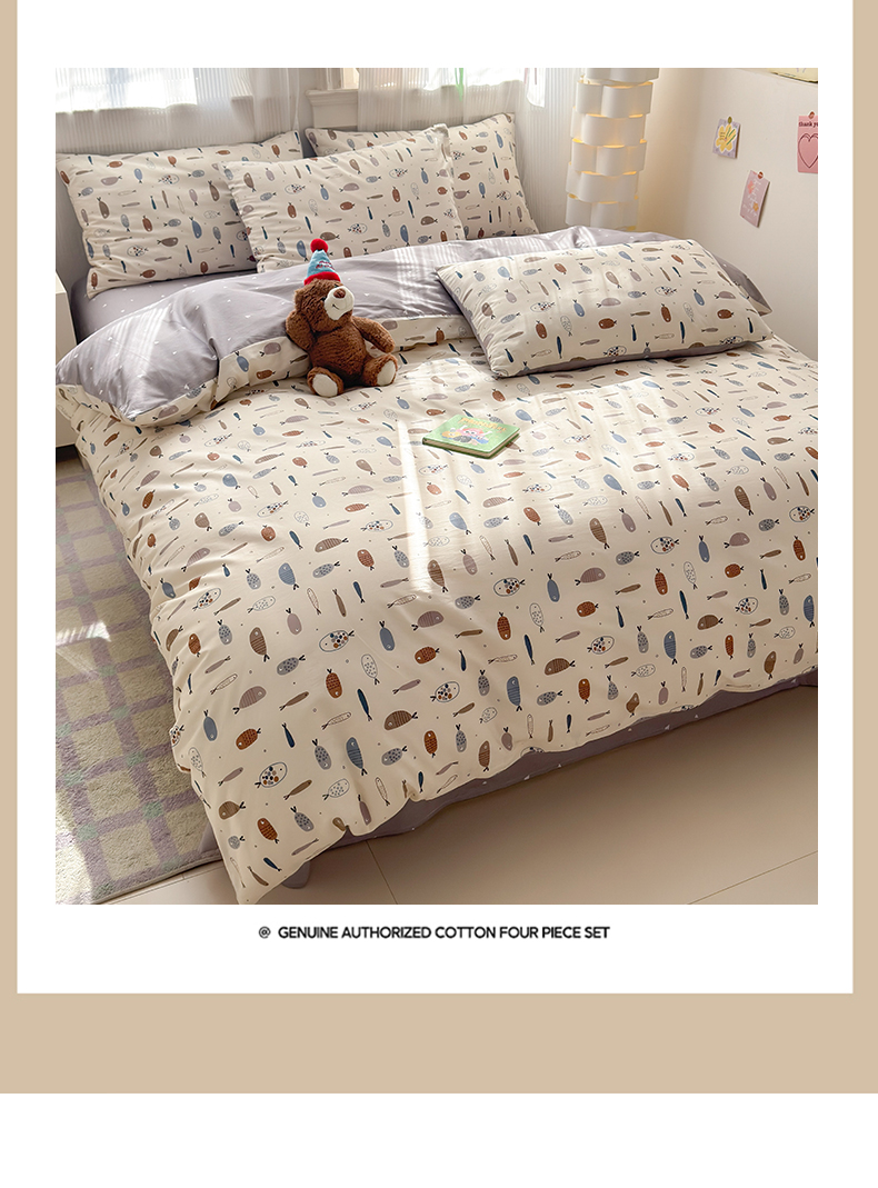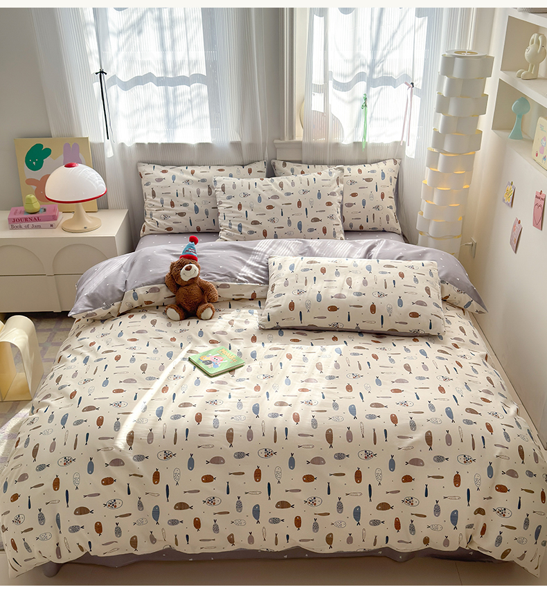 当前位置: 91家纺网 > 商品网购 > 床品套件 > 四件套 > 全棉普通四件套 > 清雅福 2025全棉13372小清新四件套和单被套早春系列第二批--四件套 鱼多多