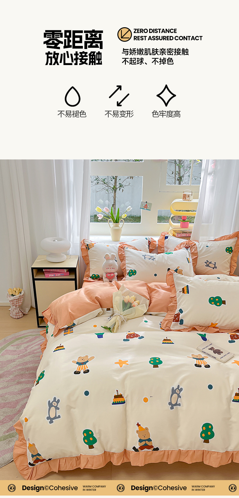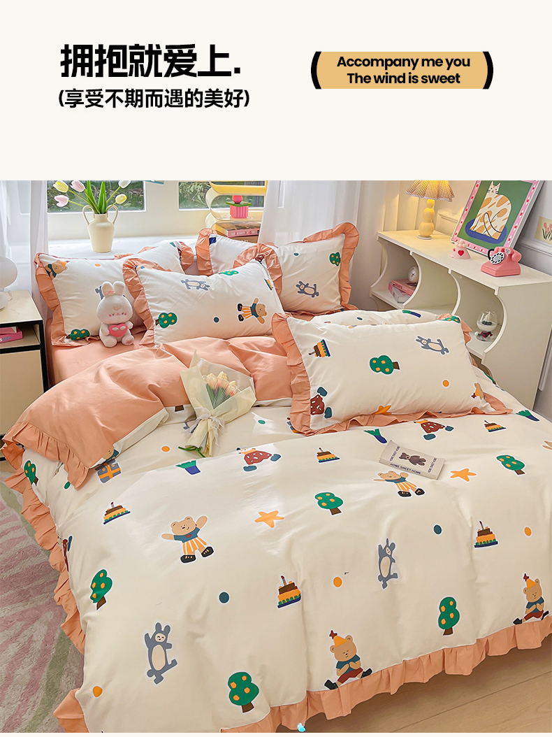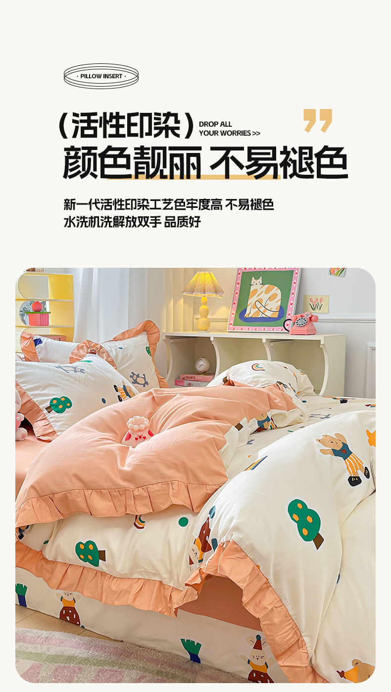 美洲琳 2025新款40支13372全棉韩版公主风花边四件套 彩绘童话-米黄