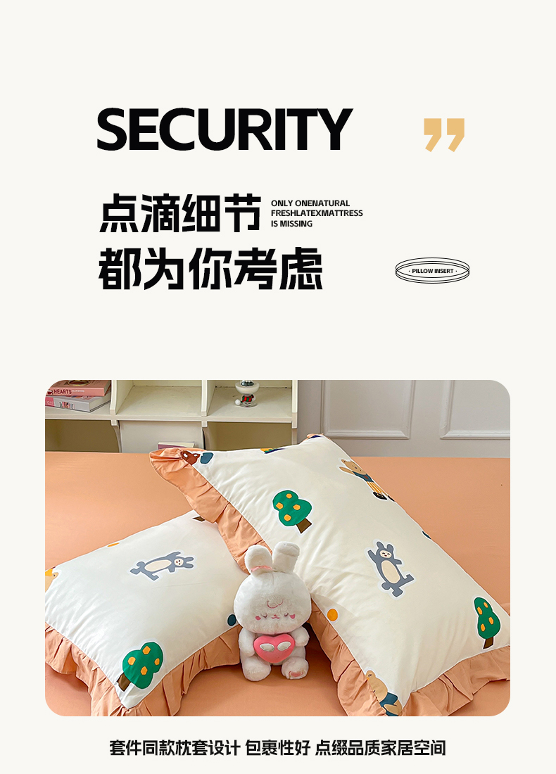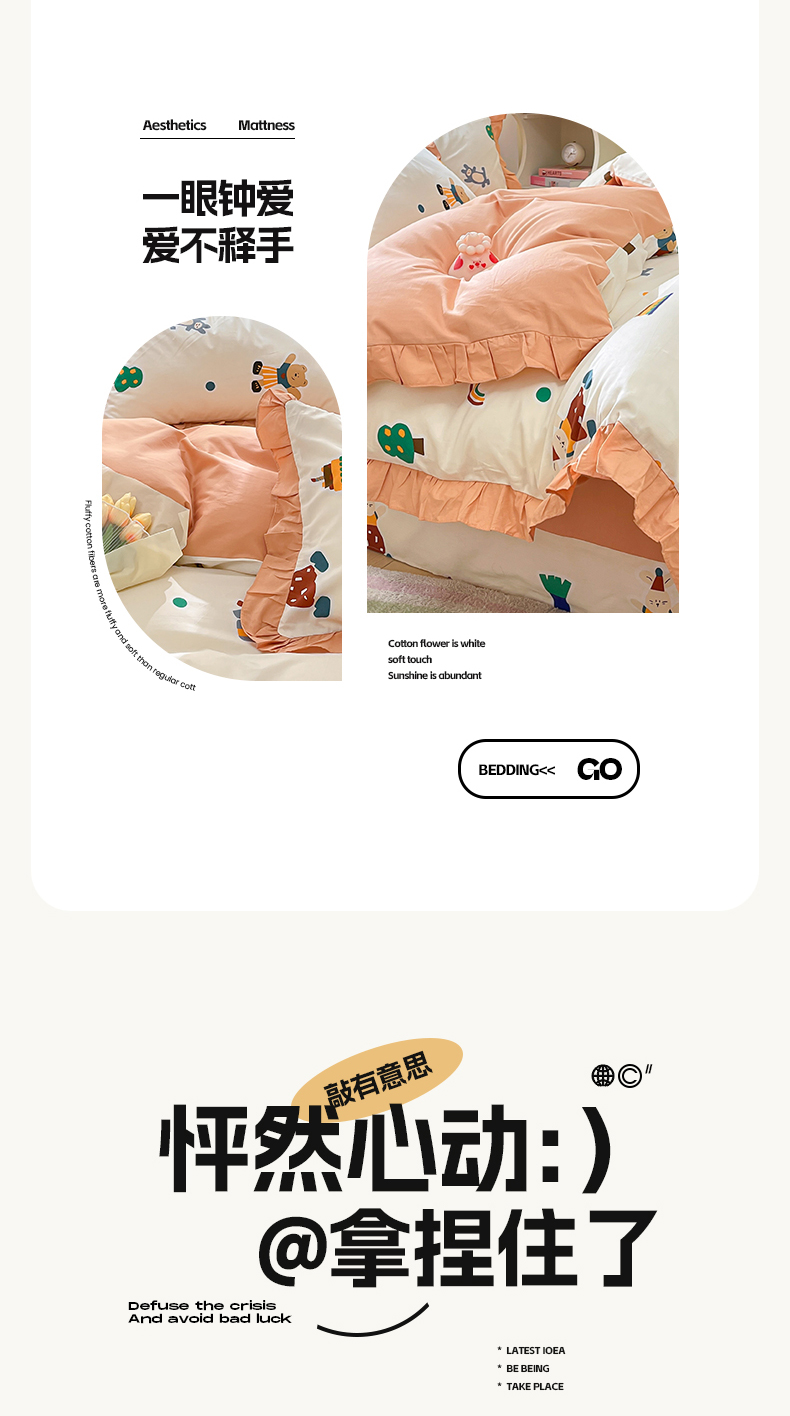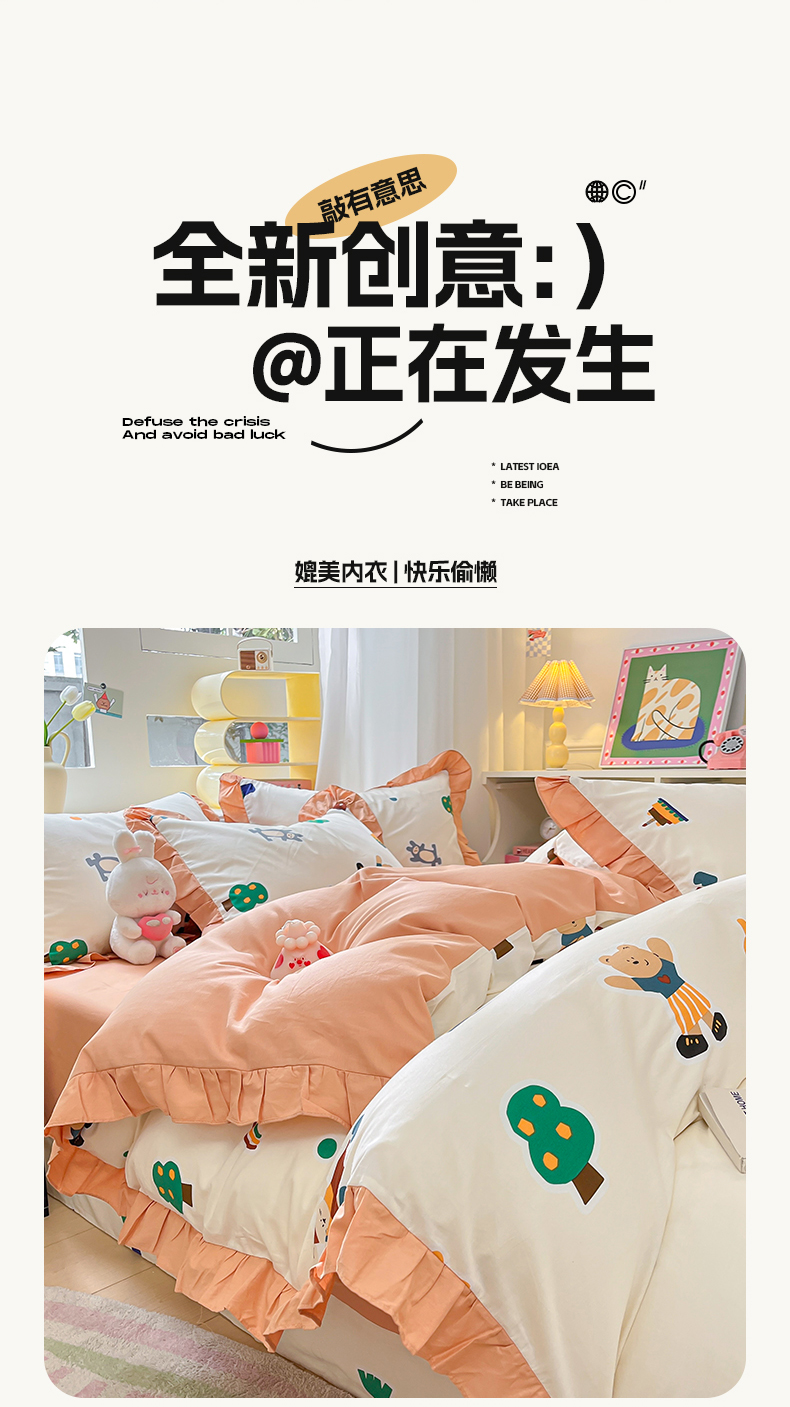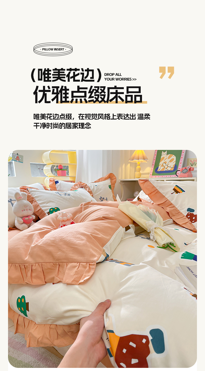 商品名称:美洲琳 2025新款40支13372全棉韩版公主风花边四件套 彩绘童话-米黄