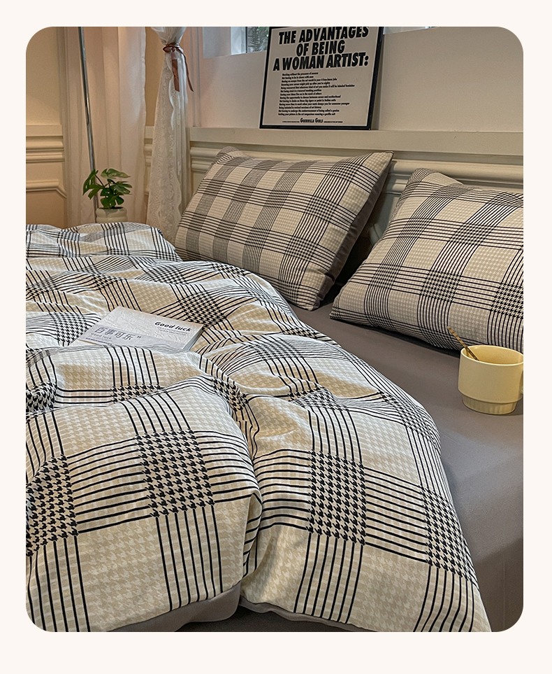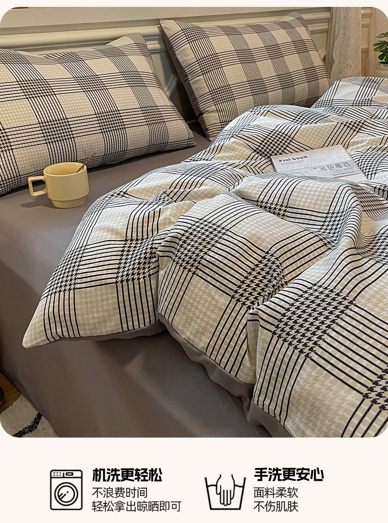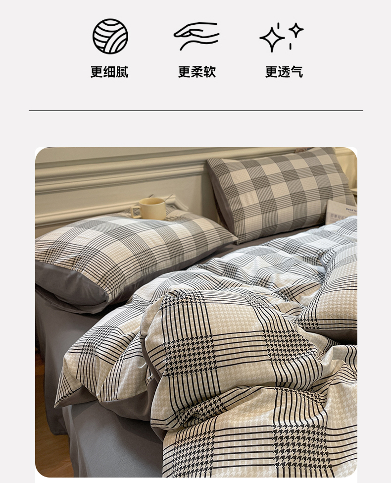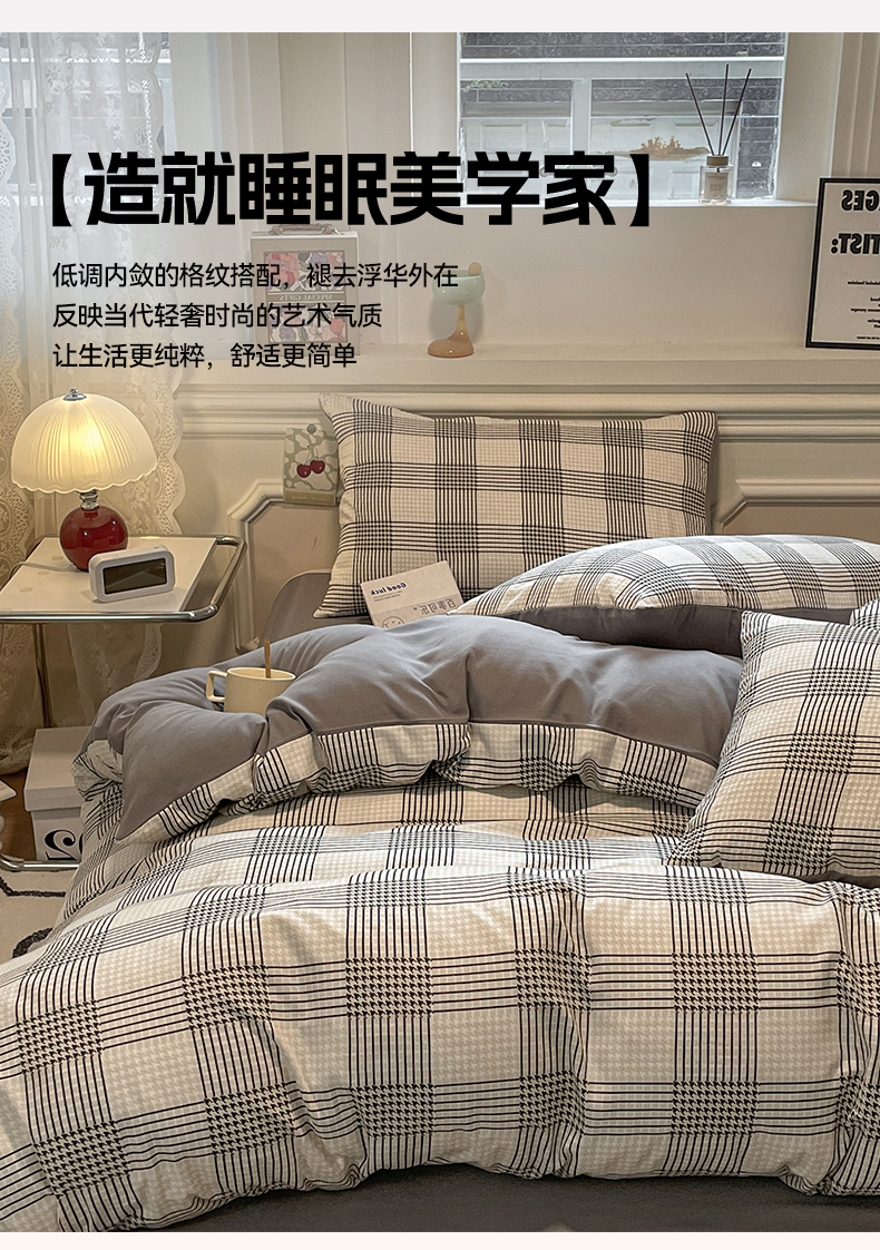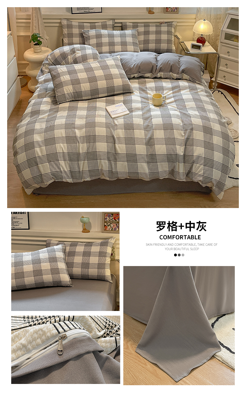 当前位置: 91家纺网 > 商品网购 > 床品套件 > 四件套 > 水洗棉四件套 > 盛秋家纺 2025新款水洗棉格子系列四件套罗格+中灰
