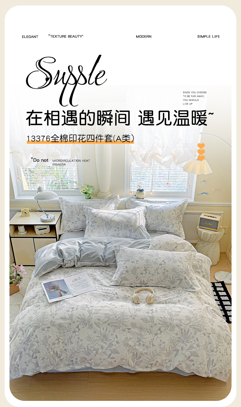 当前位置: 91家纺网 > 商品网购 > 床品套件 > 四件套 > 全棉普通四件套 > 大柏树 2025新款全棉13376印花四件套系列(可定制)-床单四件套百草集-米
