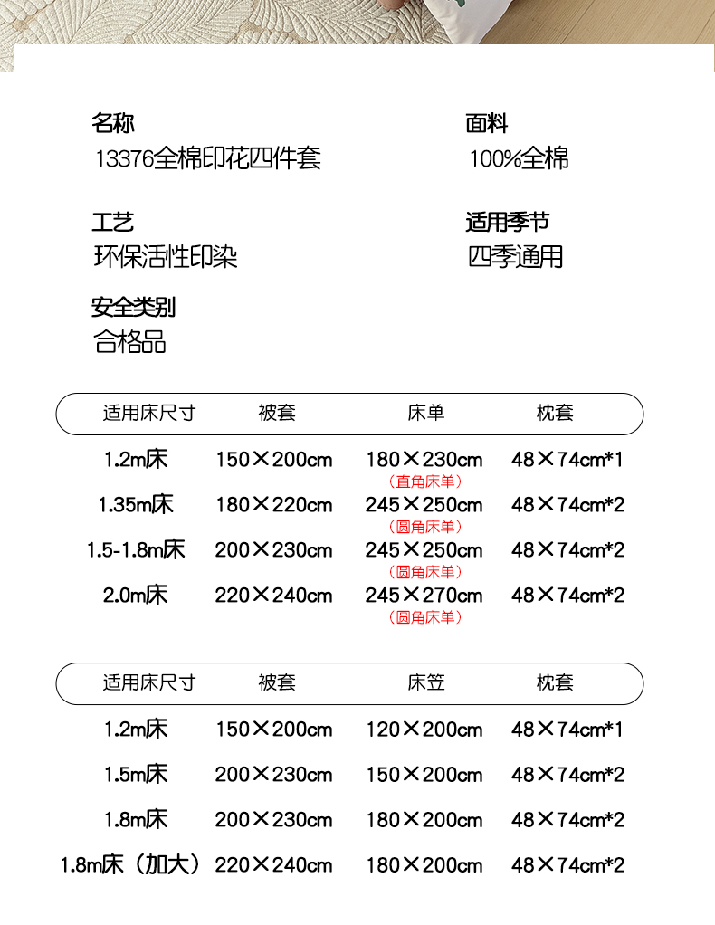 1.8m床笠四件套被套200*230 | ¥150.00 |