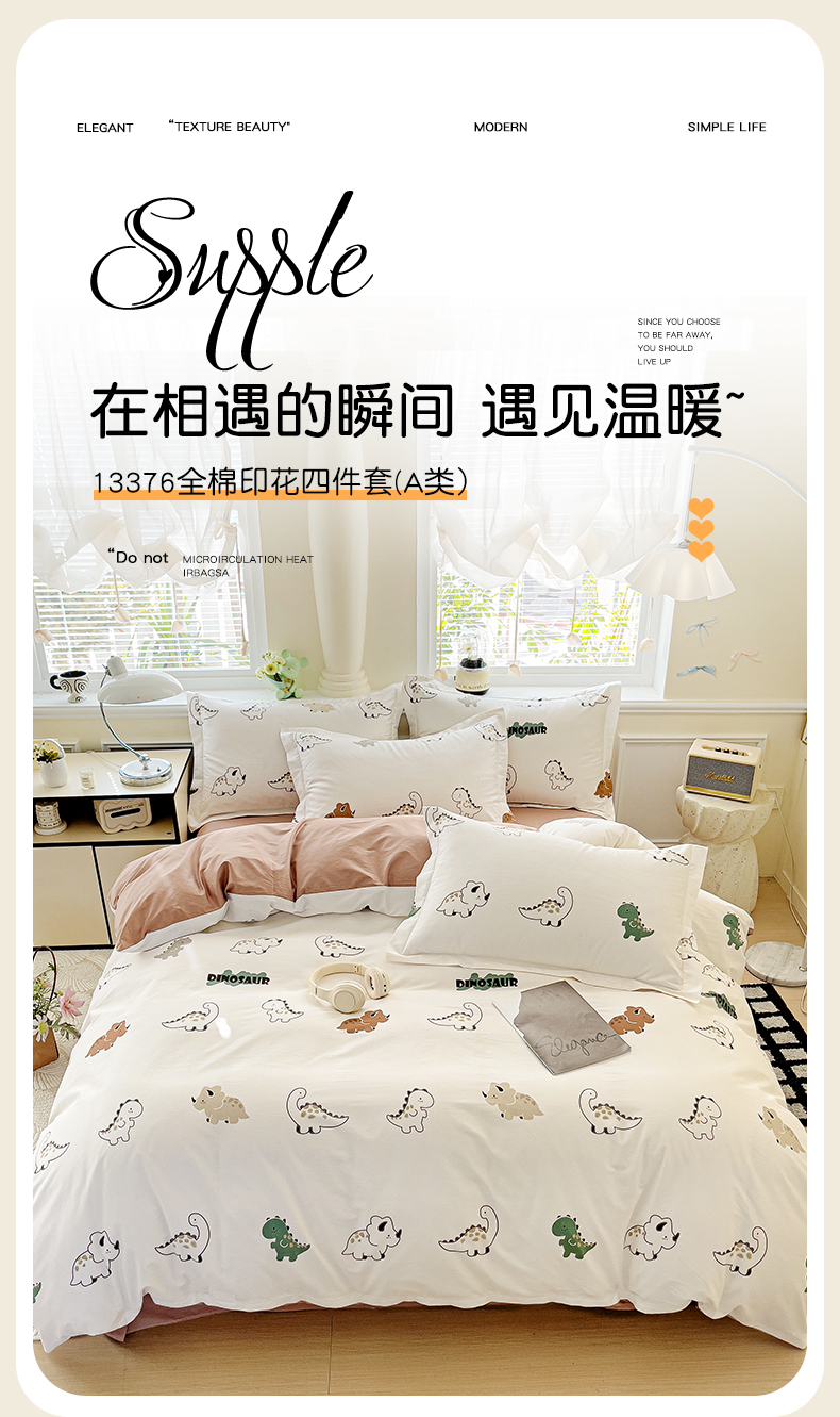 当前位置: 91家纺网 > 商品网购 > 床品套件 > 四件套 > 全棉普通四件套 > 大柏树 2025新款全棉13376印花四件套系列(可定制)-床单四件套侏罗纪