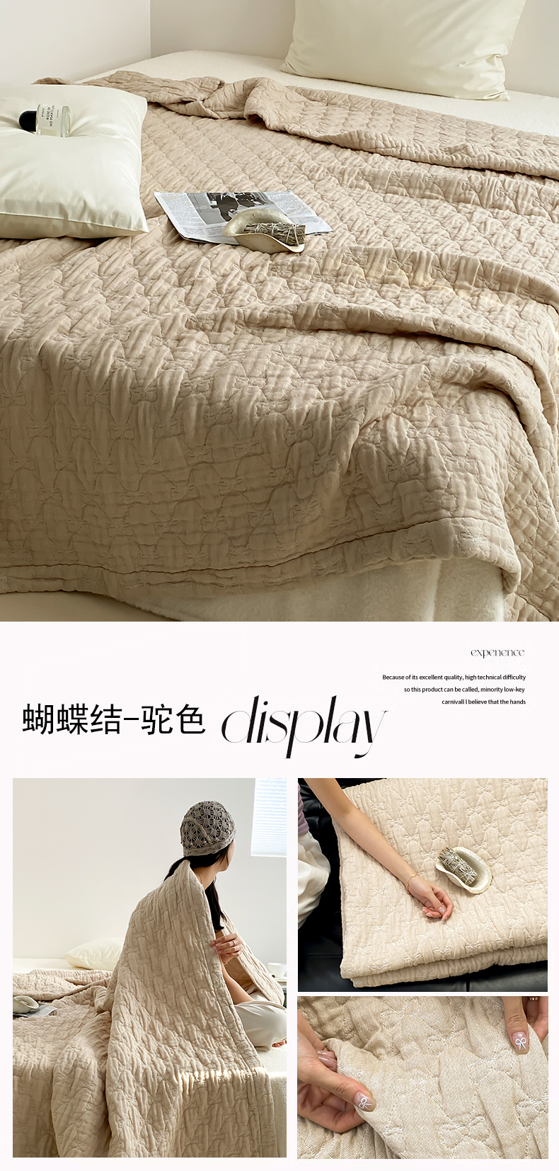商品名称:麻依2025新款全棉韩国纱布夏被子被芯 蝴蝶结-驼色