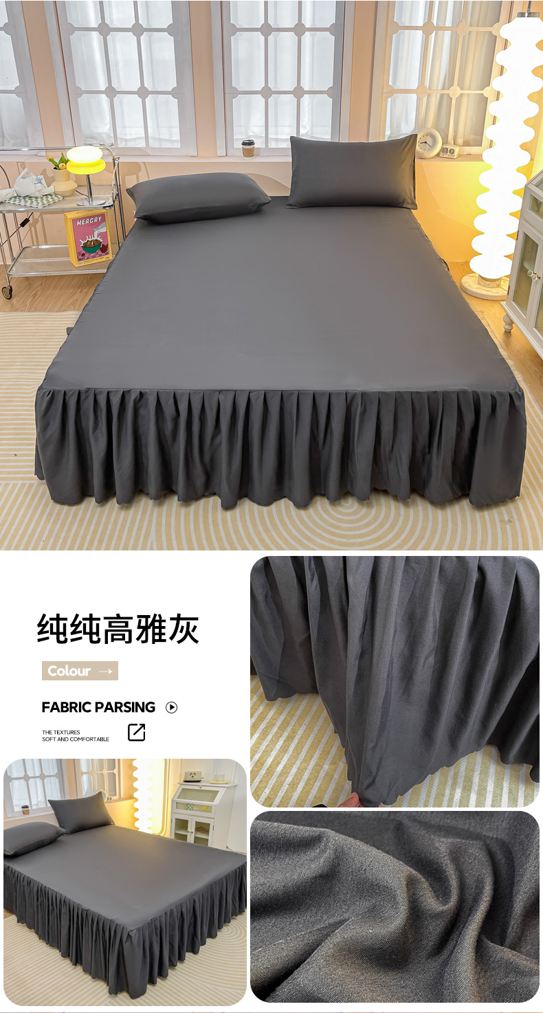 • 91家纺网 家纺一手货源 找家纺 莎臣豹 2025水洗磨毛纯色单品床裙可配二三件套 纯纯高雅灰