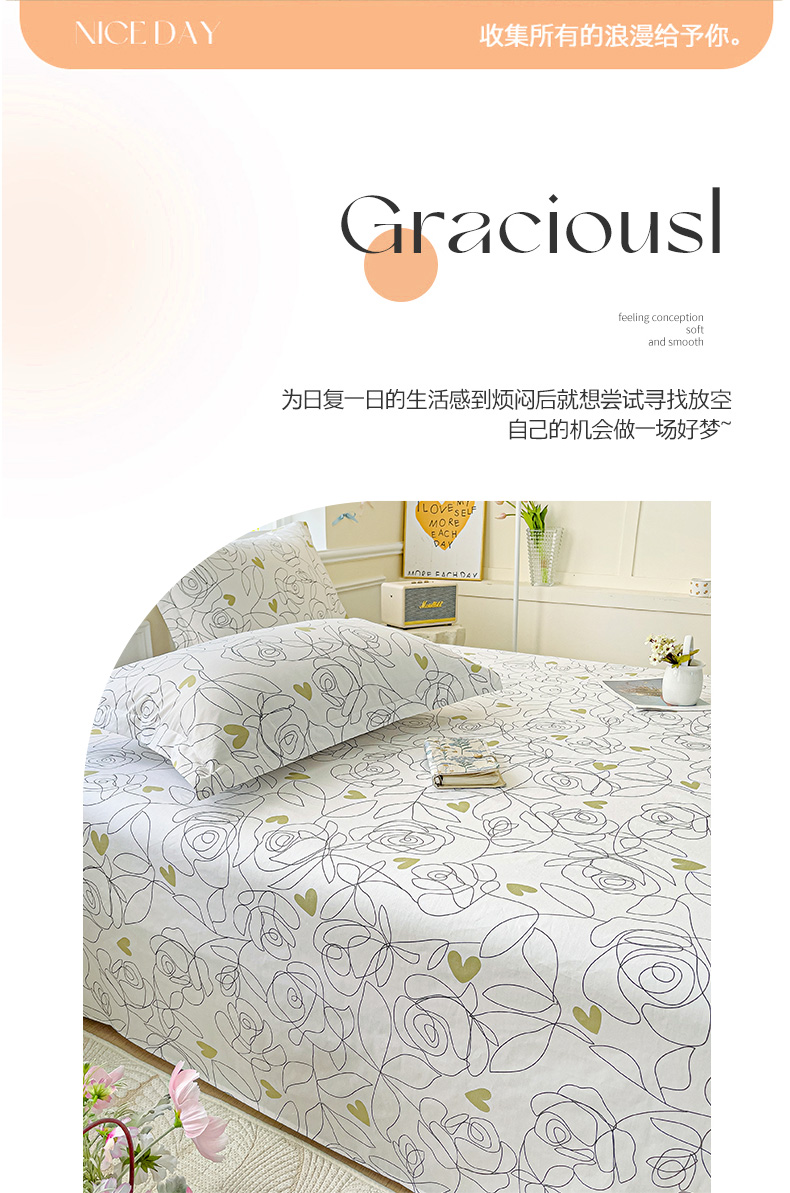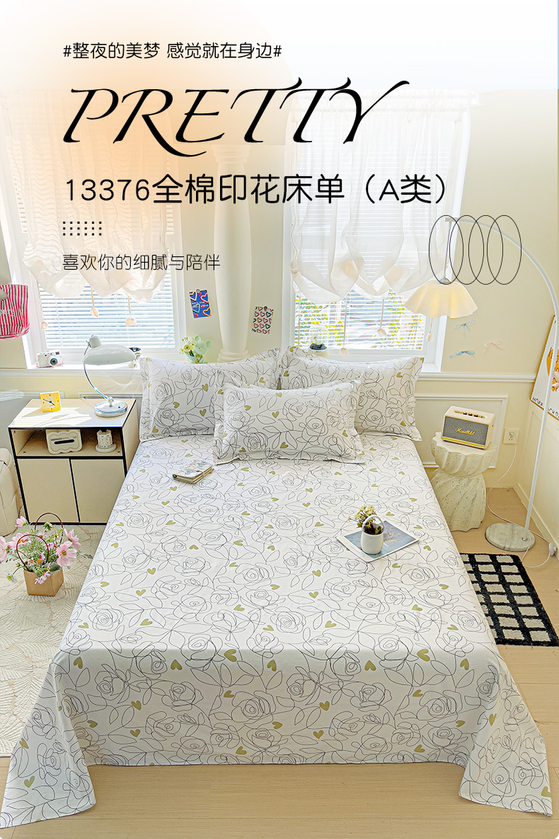 大柏树 2025新款全棉13376印花四件套系列(可定制)-单床单玫瑰爱情