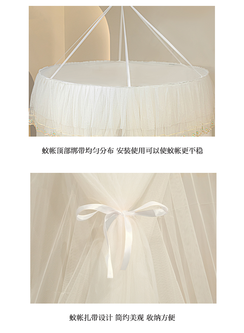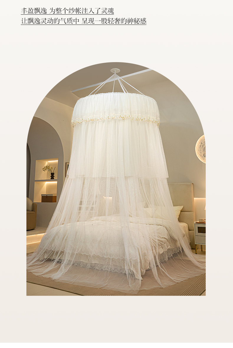 商品名称:世婕 2025新款奢华宫廷吊顶蚊帐-幻梦 幻梦白色