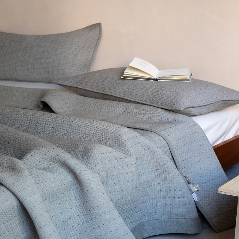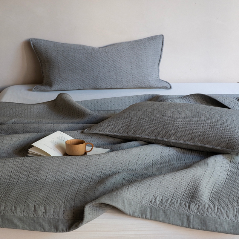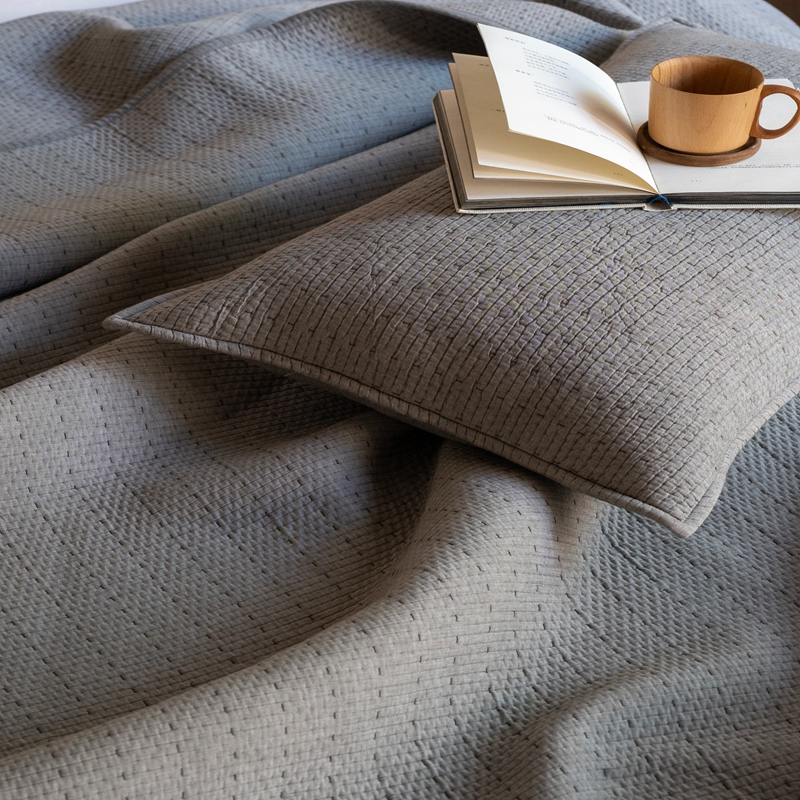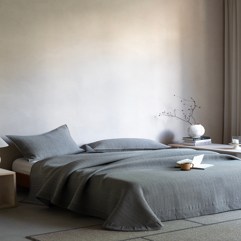 (总)璞素2025新款全棉色织三层纱床盖三件套-摩卡