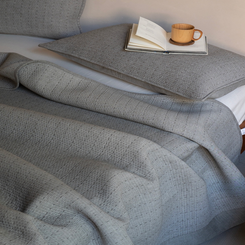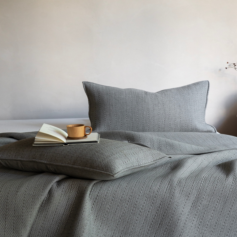 (总)璞素2025新款全棉色织三层纱床盖三件套-落雪,落雪白,落雪灰,落雪咖