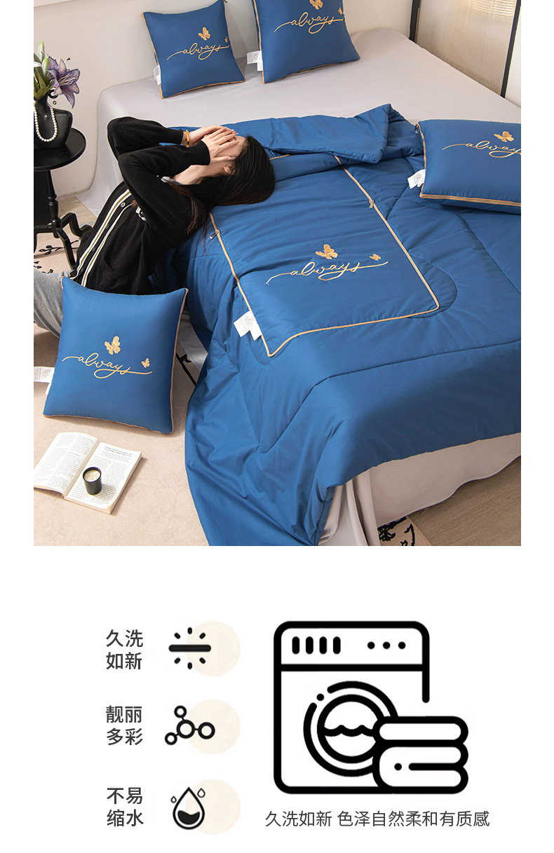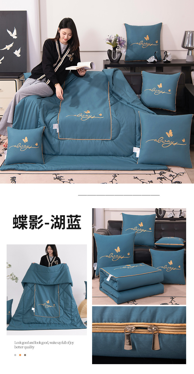 商品名称:照世家纺 2025新款柔软透气全棉抱枕被-蝶影 蝶影-湖蓝