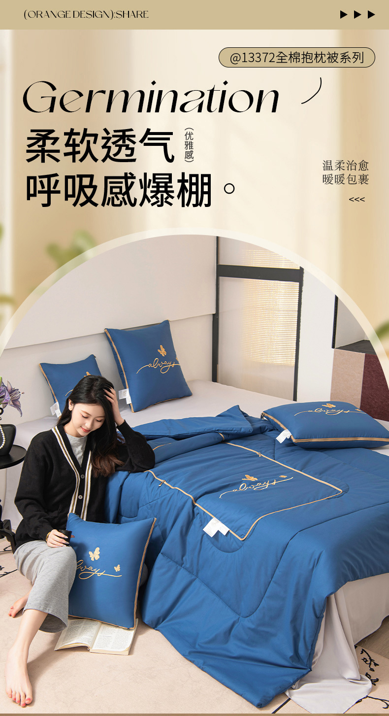照世家纺 2025新款柔软透气全棉抱枕被-蝶影 蝶影-湖蓝