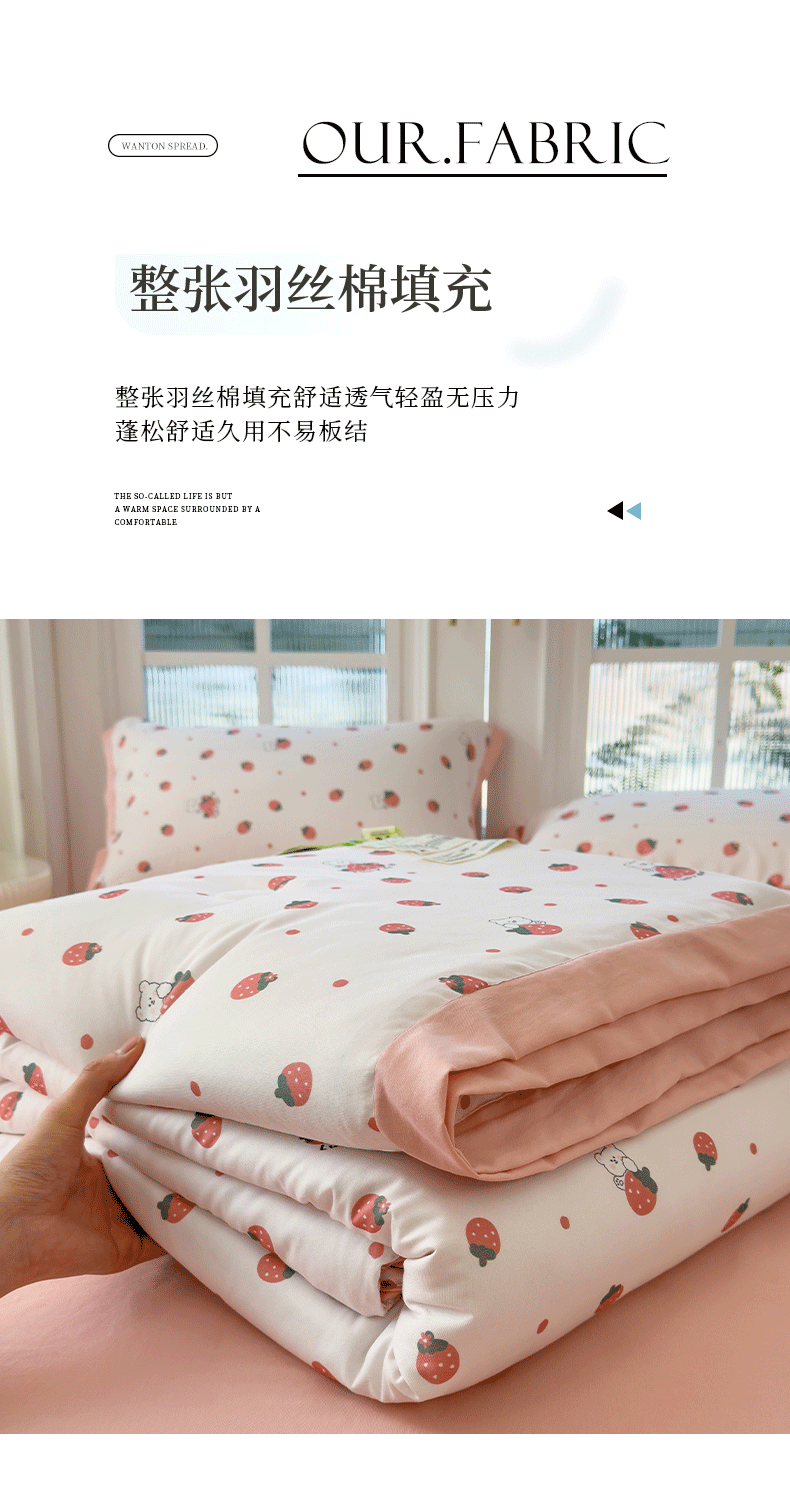 商品名称:悦织语 2025新款A类针织棉双层纱韩版夏被四件套空调被 草莓熊