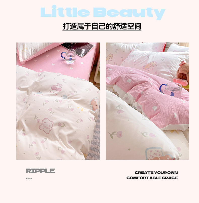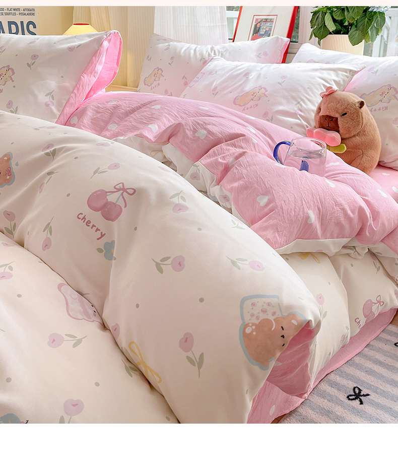 盛秋家纺 2026新款A类水洗棉豆豆夏被系列 甜茶日记+奶油粉,甜茶日记+奶油粉