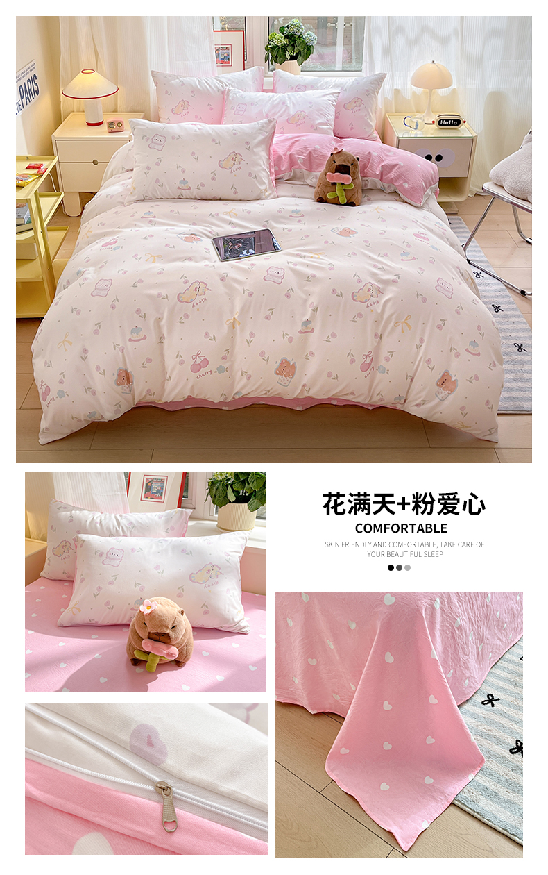 商品名称:盛秋家纺 2025新款卡通单被套 花满天+粉爱心