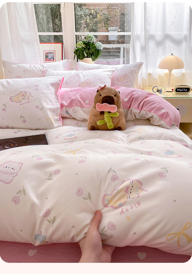 (总)盛秋家纺 2026新款卡通款A类水洗棉印花四件套,爱心猫咪+花朵蓝,格子铺粉+花朵蓝,满山猫+猫爪,软萌汪汪蓝+花朵粉,森林小象蓝+花朵蓝,生日派对+花朵粉,天使小马粉+花朵蓝,田园萌狗+花朵咖,甜茶日记+花朵粉,小狗来信+花朵粉,熊熊乐园+花朵咖,修勾蓝+花朵蓝