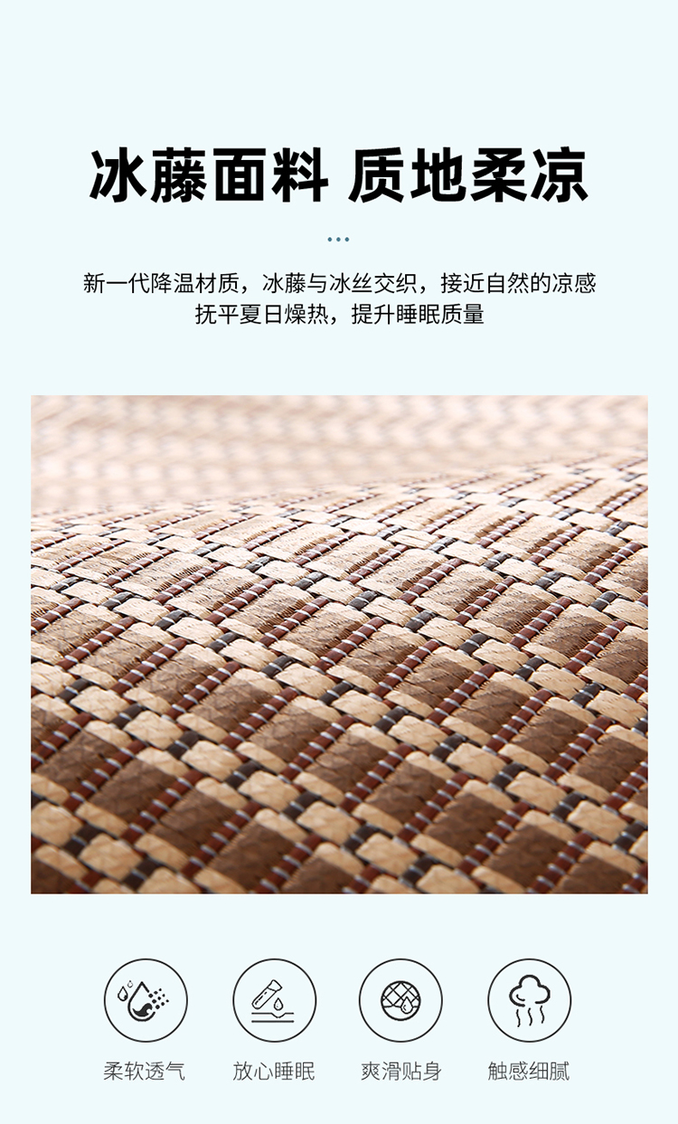 2023新款夏日冰点-冰藤双面席凉席藤席竹席冰丝席乳胶席,咖色,蓝色,绿色,香槟