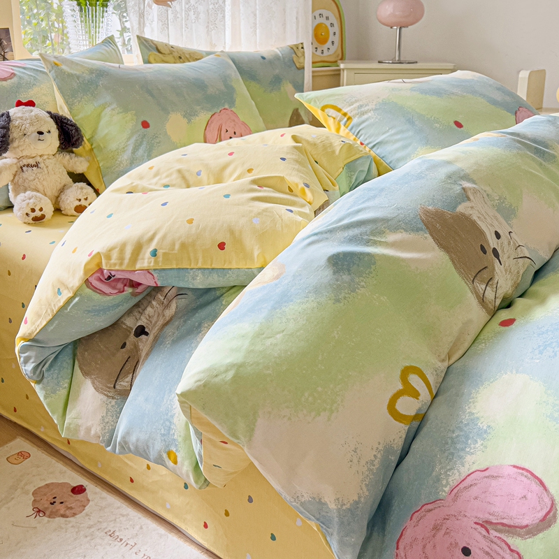 (总)麦朵家居 2025新款全棉简约款四件套,动物乐园,快乐生活,萌宠宝贝,宁静小兔,甜美的梦,维尼小熊,油彩画