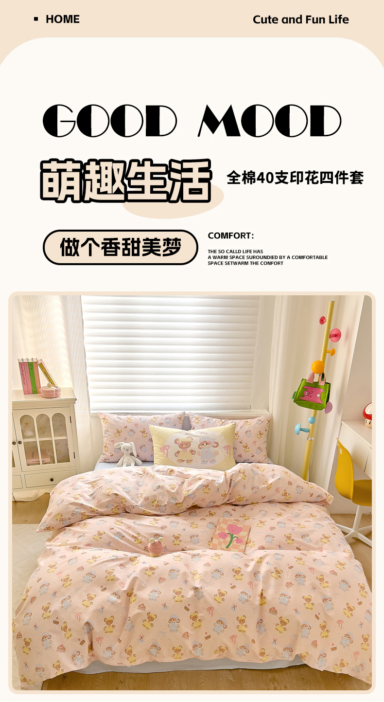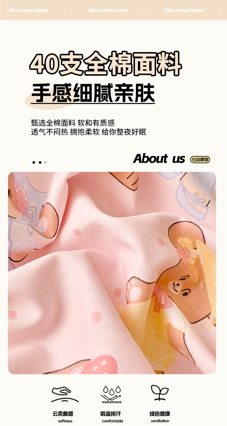 当前位置: 91家纺网 > 商品网购 > 床品套件 > 四件套 > 全棉普通四件套 > DoDo兜兜2025新款40支13372全棉印花四件套 糖果甜心