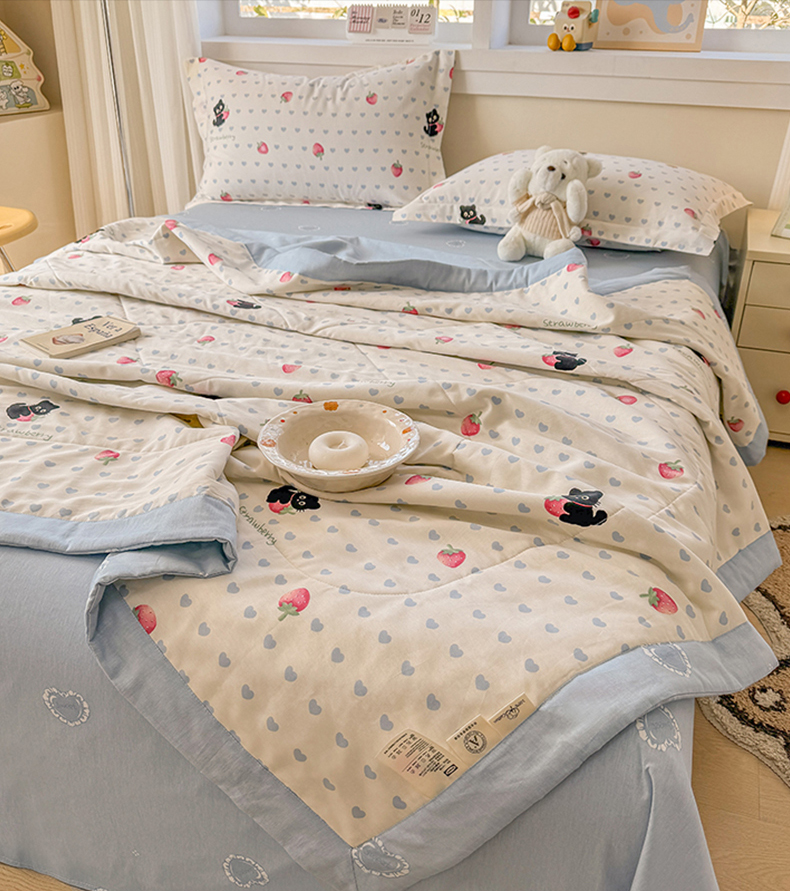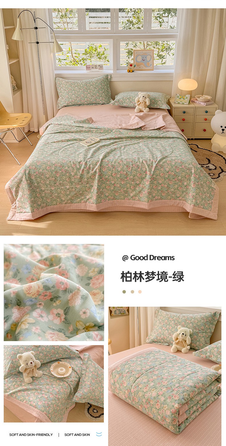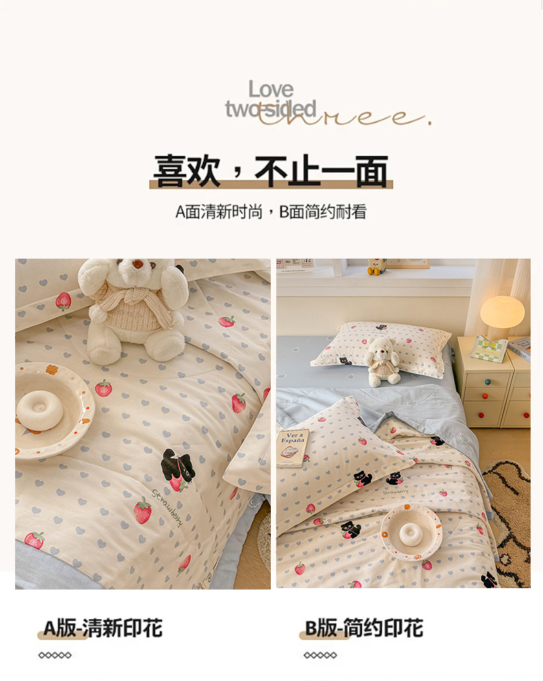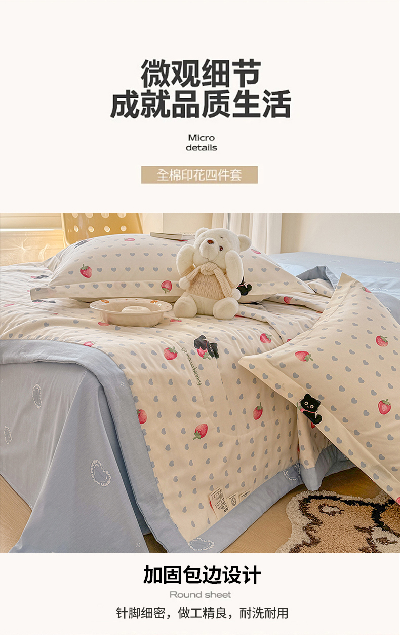 • 91家纺网 家纺一手货源 找家纺 梦依依 2025新款小清新印花系列里外全棉棉花被夏被四件套 甜心蜜趣