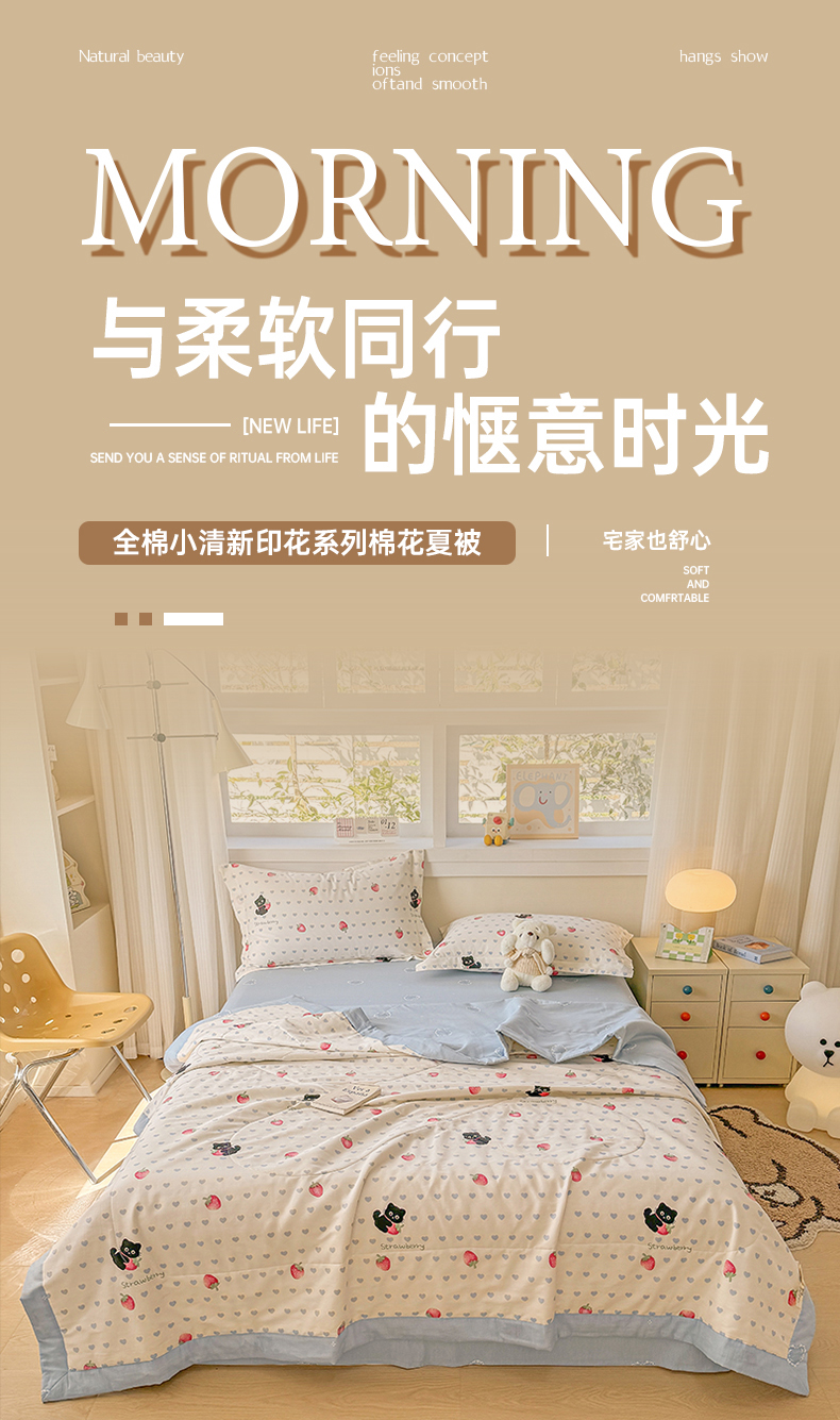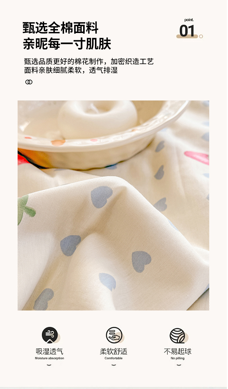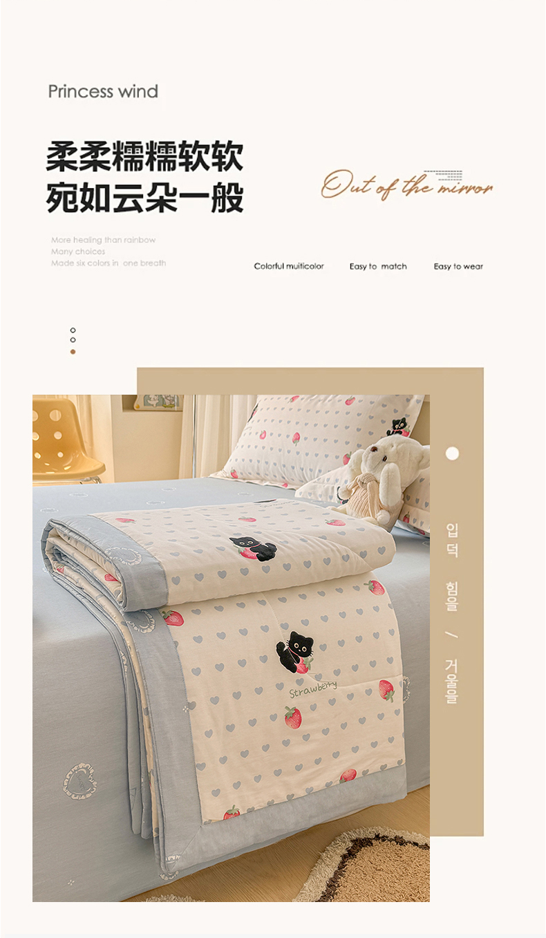 • 91家纺网 家纺一手货源 找家纺 梦依依 2025新款小清新印花系列里外全棉棉花被夏被四件套 甜心蜜趣