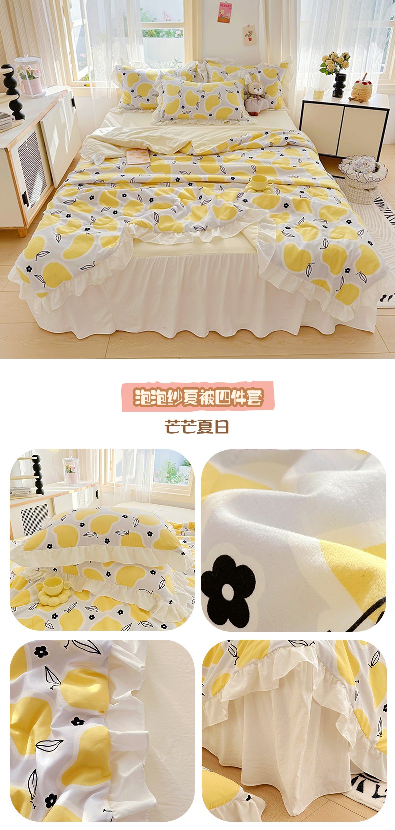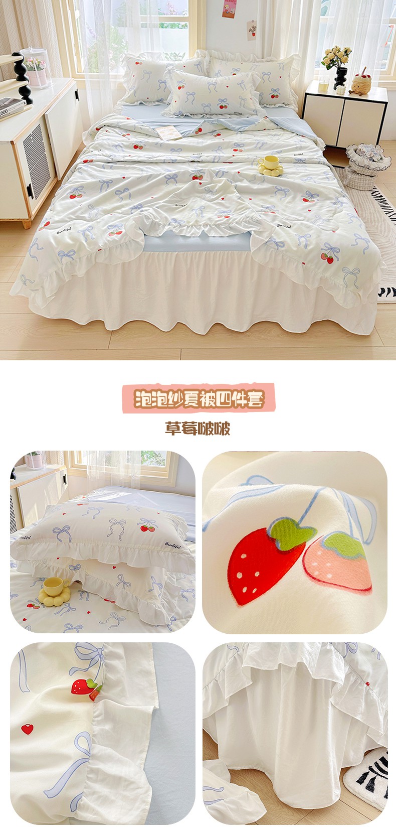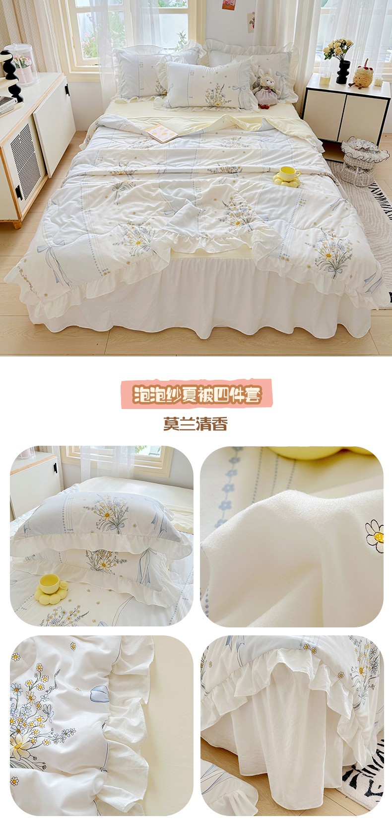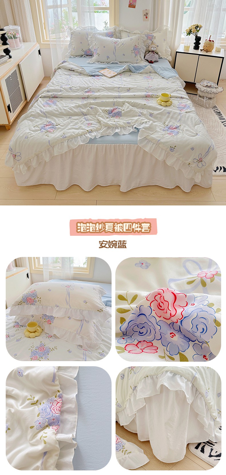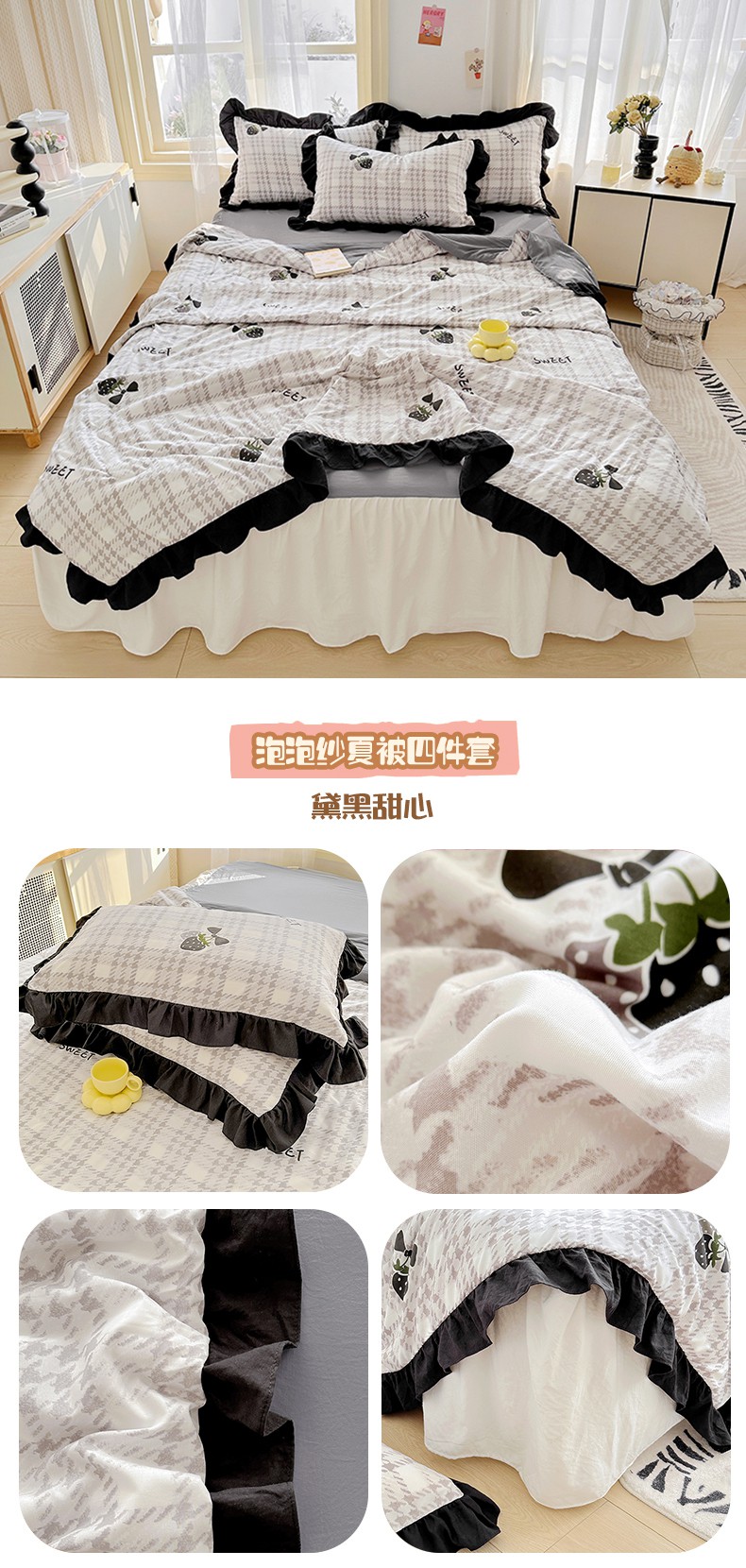 • 91家纺网 家纺一手货源 找家纺 家贝爱 2025新款泡泡纱水洗棉花边床单/床裙款夏被四件套夏凉被 蛋糕狗狗