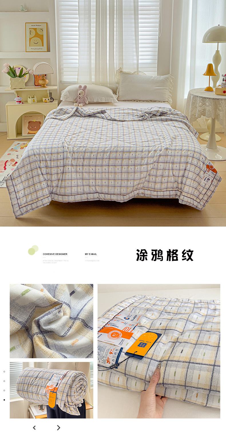 商品名称:莎臣豹 2025新款小清新水洗棉花边夏被 涂鸦格纹