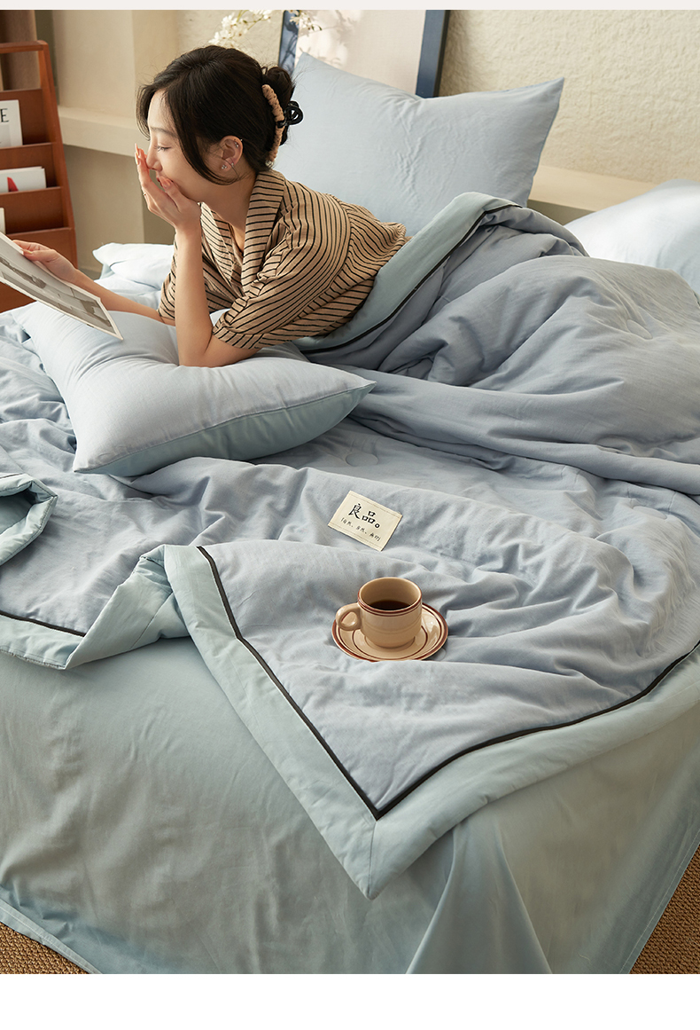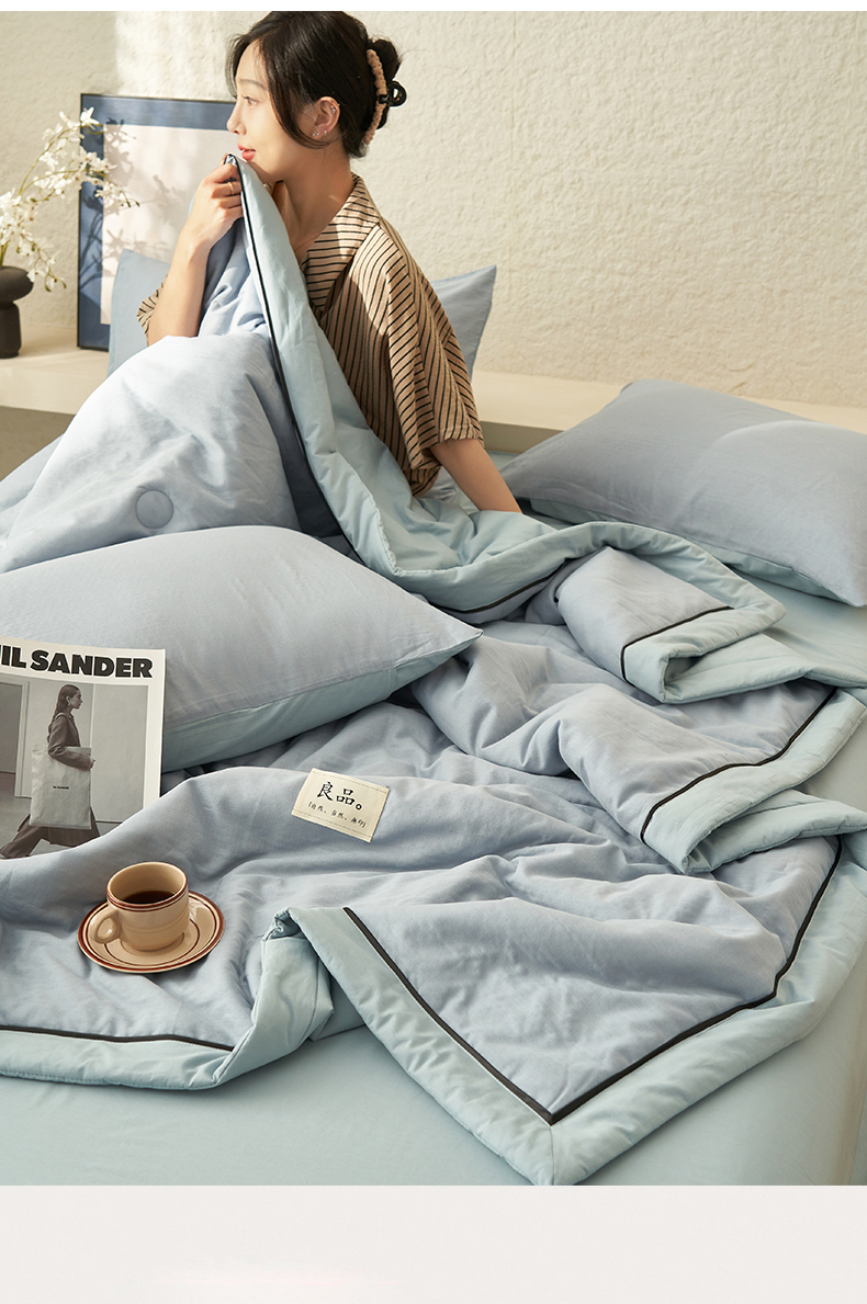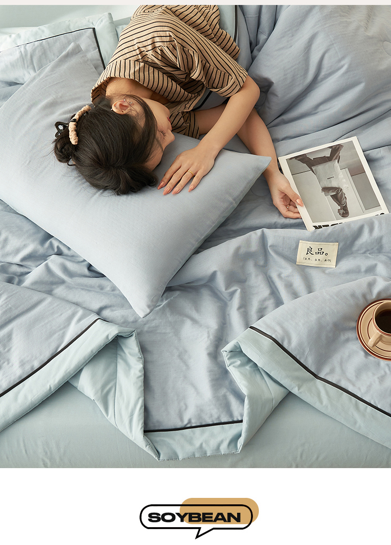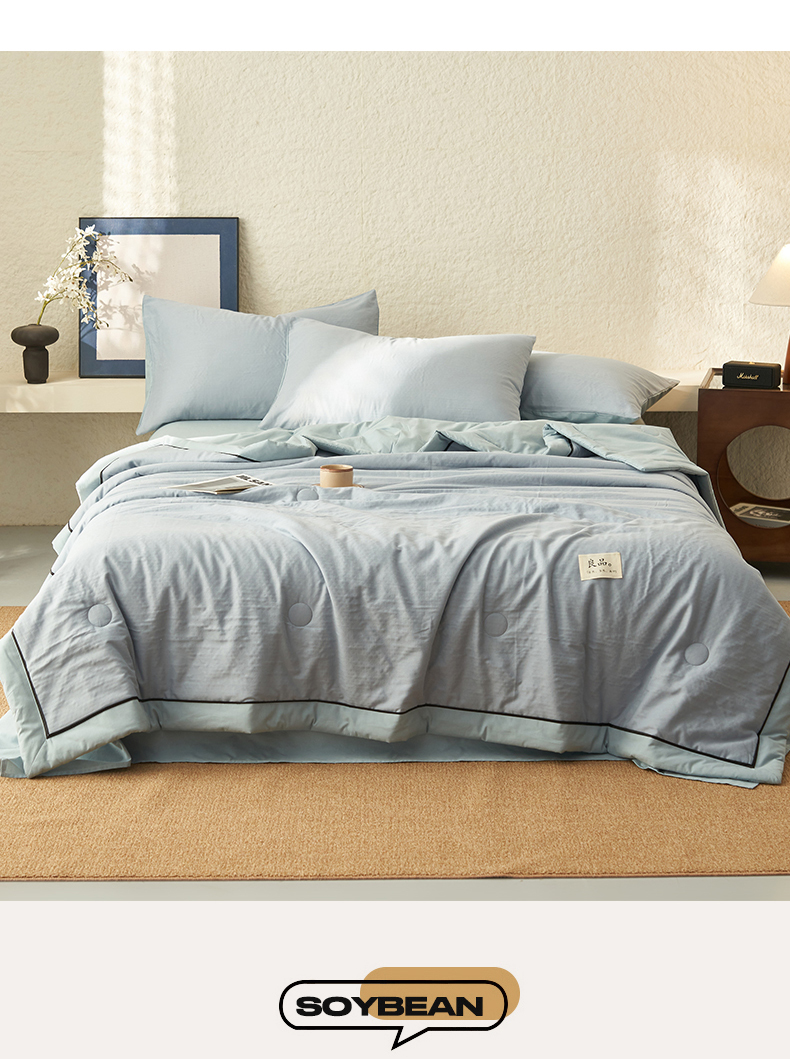 当前位置: 91家纺网 > 商品网购 > 床品套件 > 四件套 > 全棉普通四件套 > 2025新款新款A类纯棉双层纱大豆夏被四件套全棉空调被 天蓝色