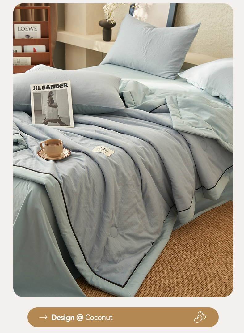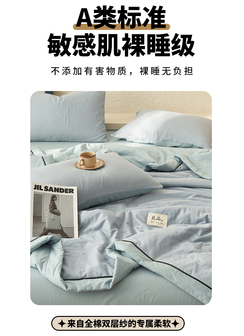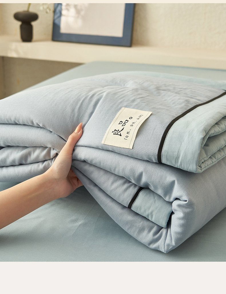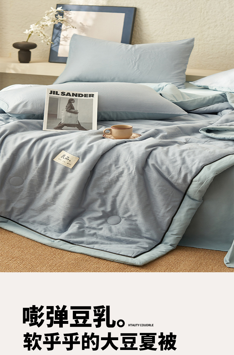 当前位置: 91家纺网 > 商品网购 > 床品套件 > 四件套 > 全棉普通四件套 > 2025新款新款A类纯棉双层纱大豆夏被四件套全棉空调被 天蓝色