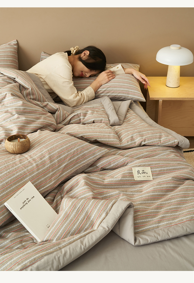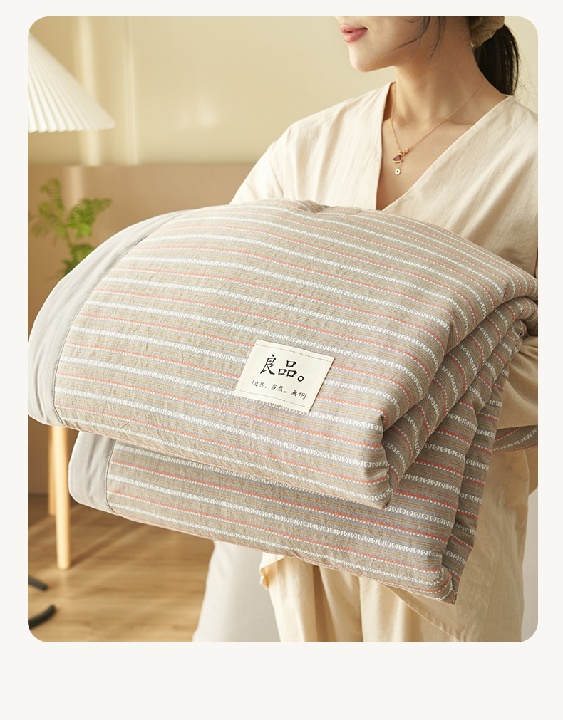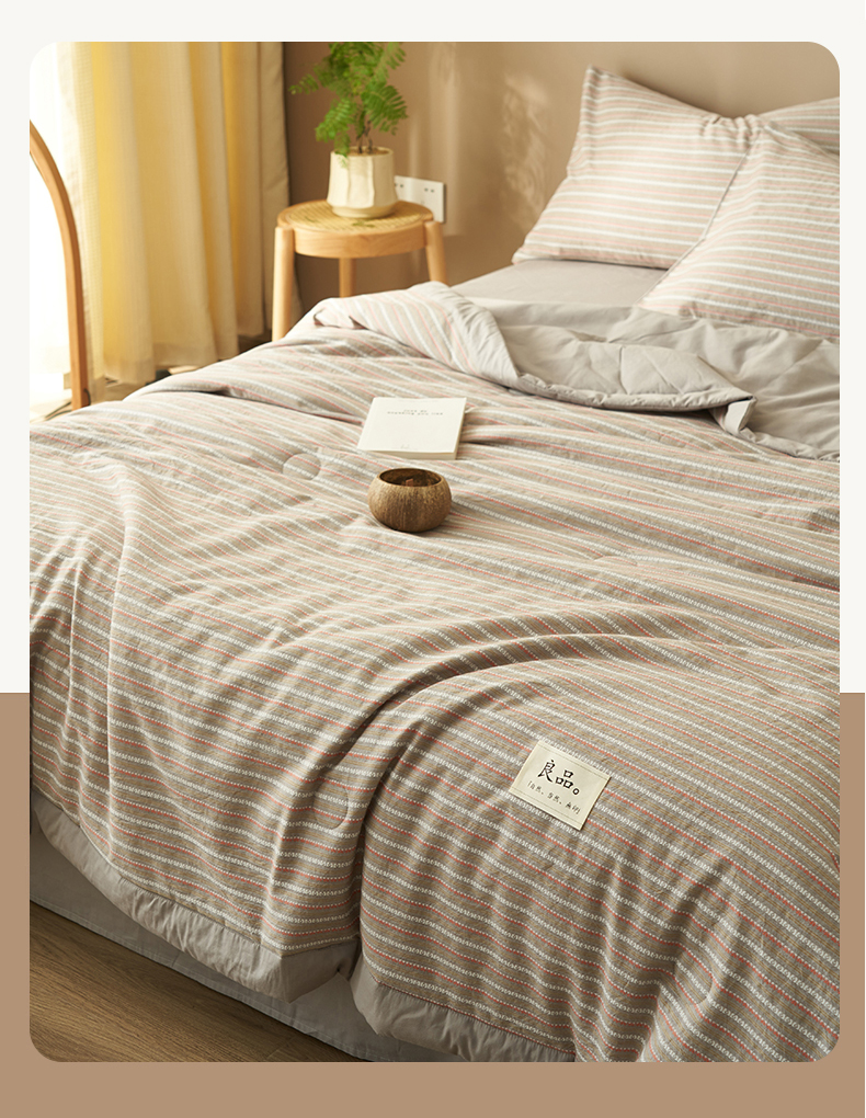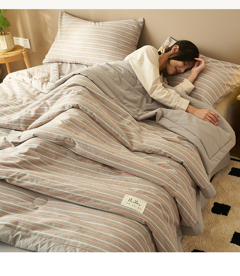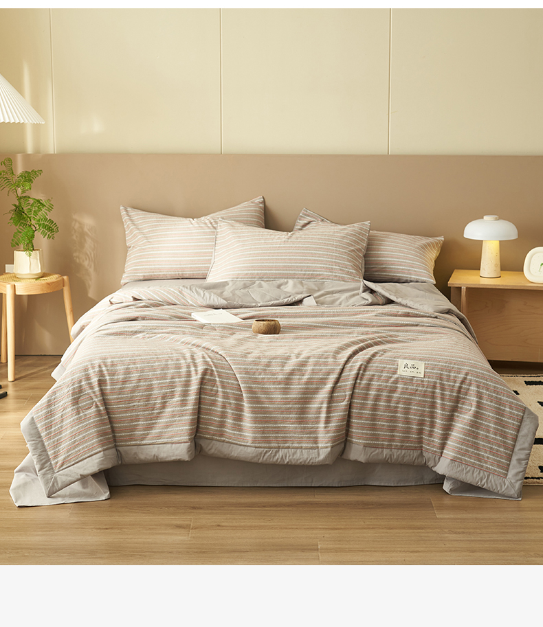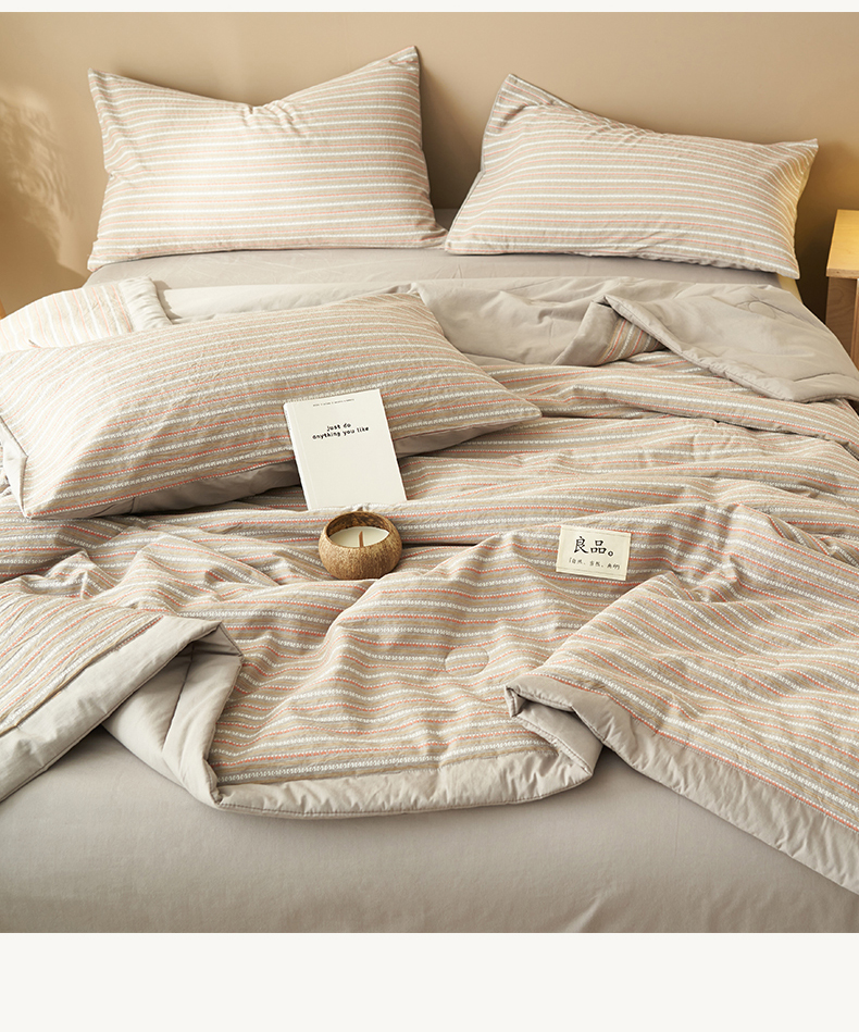 商品名称:(总)金鹰 2025新款A类纯棉提花条纹水洗棉大豆全棉夏被空调被四件套