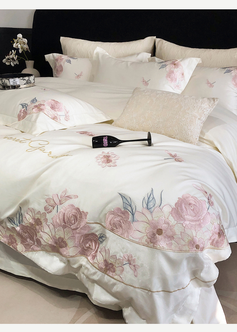 2025新款全棉50s绣花刺绣款四件套 朵卿-白