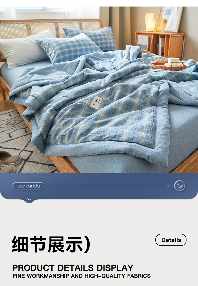 • 91家纺网 家纺一手货源 找家纺 2025新款A类纯棉水洗棉色织棉花夏被四件套全棉空调被夏凉被 绚丽格