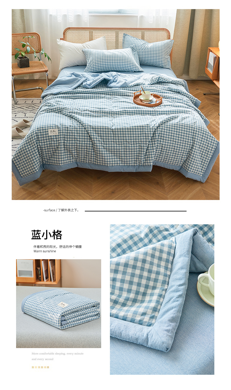 当前位置: 91家纺网 > 商品网购 > 被子 > 夏被 > 2025新款A类纯棉水洗棉色织棉花夏被四件套全棉空调被夏凉被 绚丽格