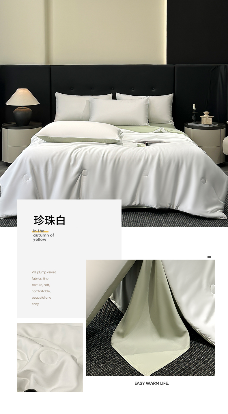 当前位置: 91家纺网 > 商品网购 > 床品套件 > 四件套 > 夏被四件套 > 金鹰 2025新款A类莱赛尔50天丝拼色空调被大豆夏被四件套 珍珠白