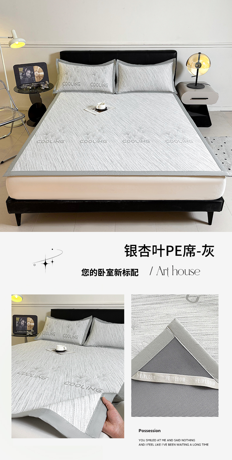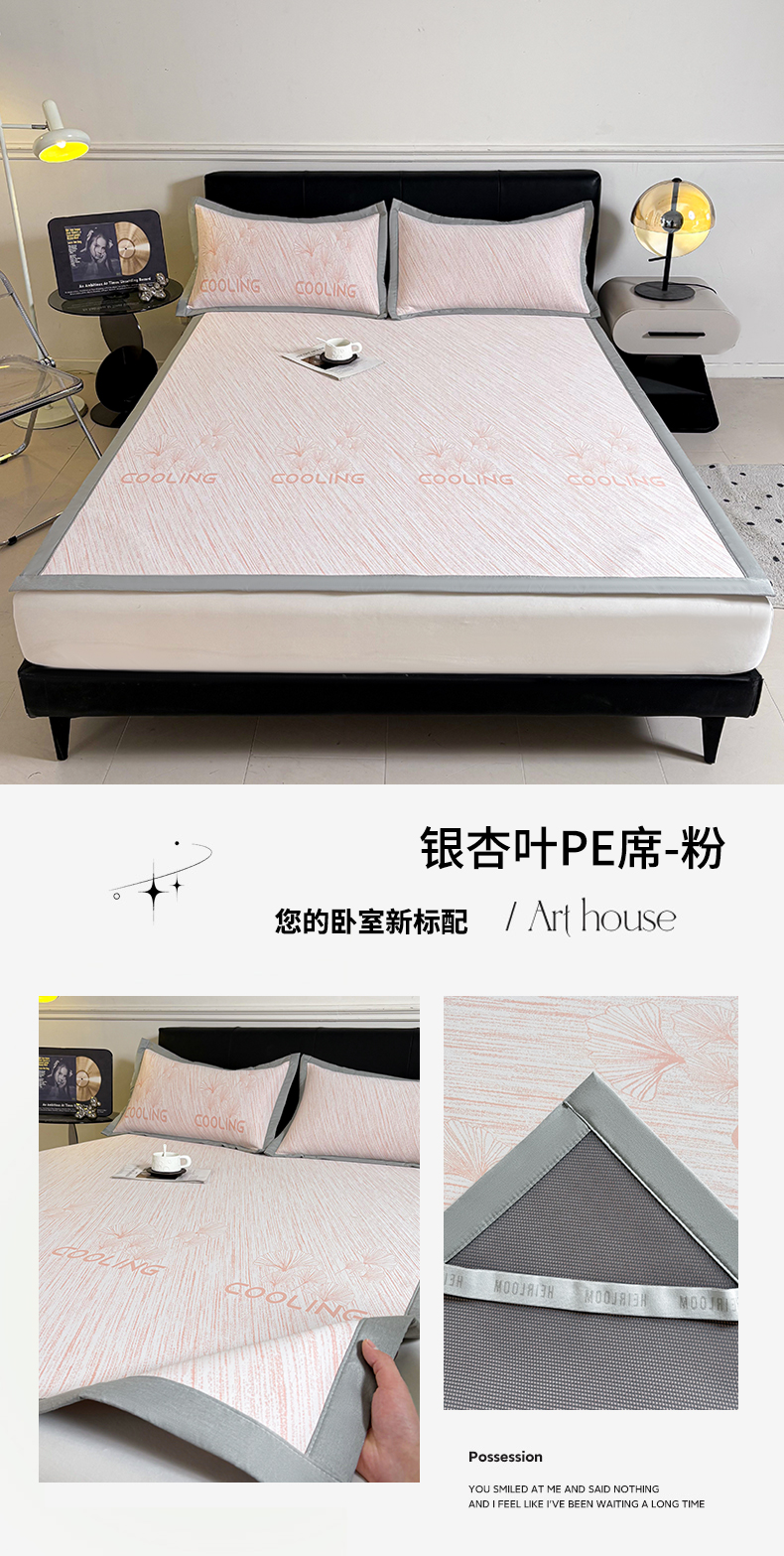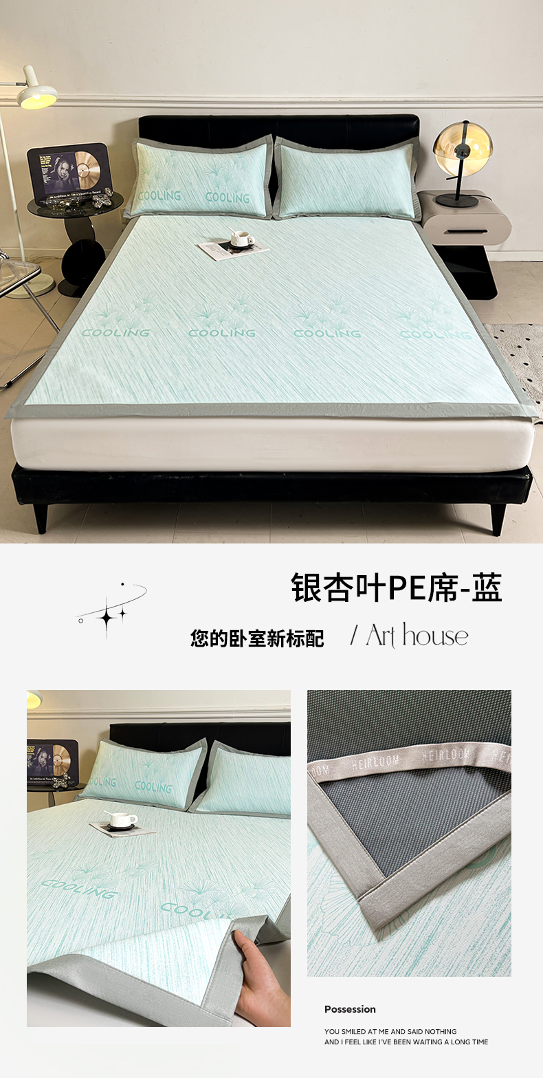 商品名称:(总)雯豆2025中分子PE凉感冰丝凉席三件套平铺绑带款席子