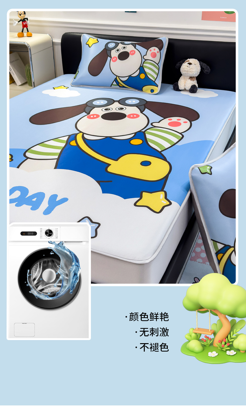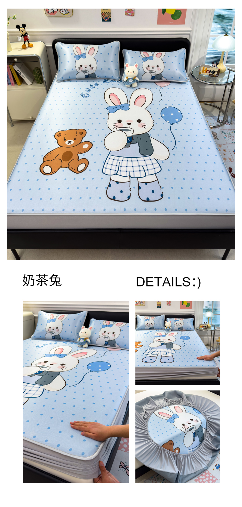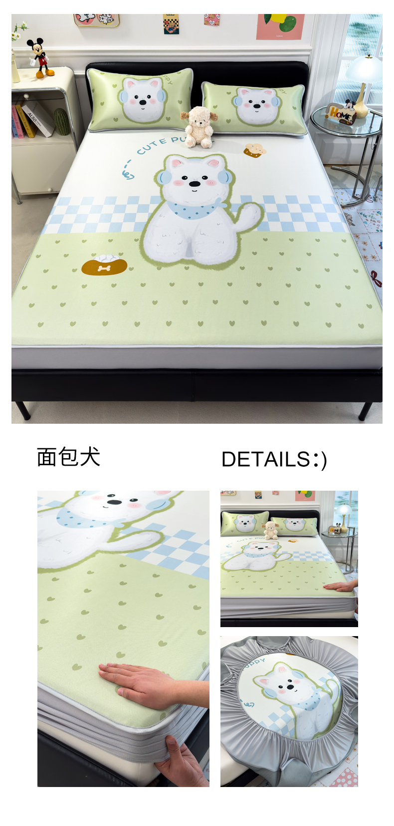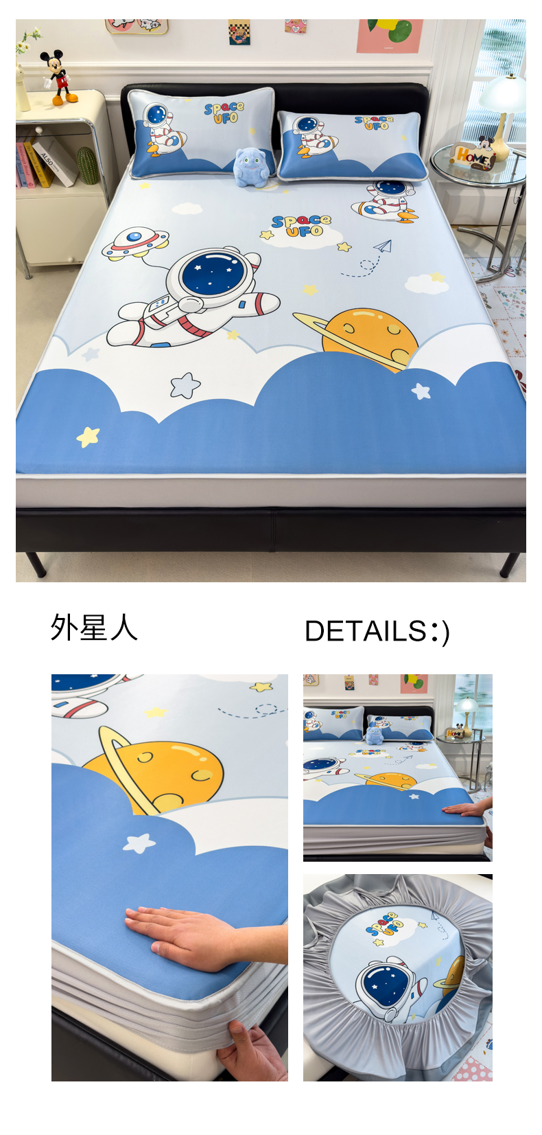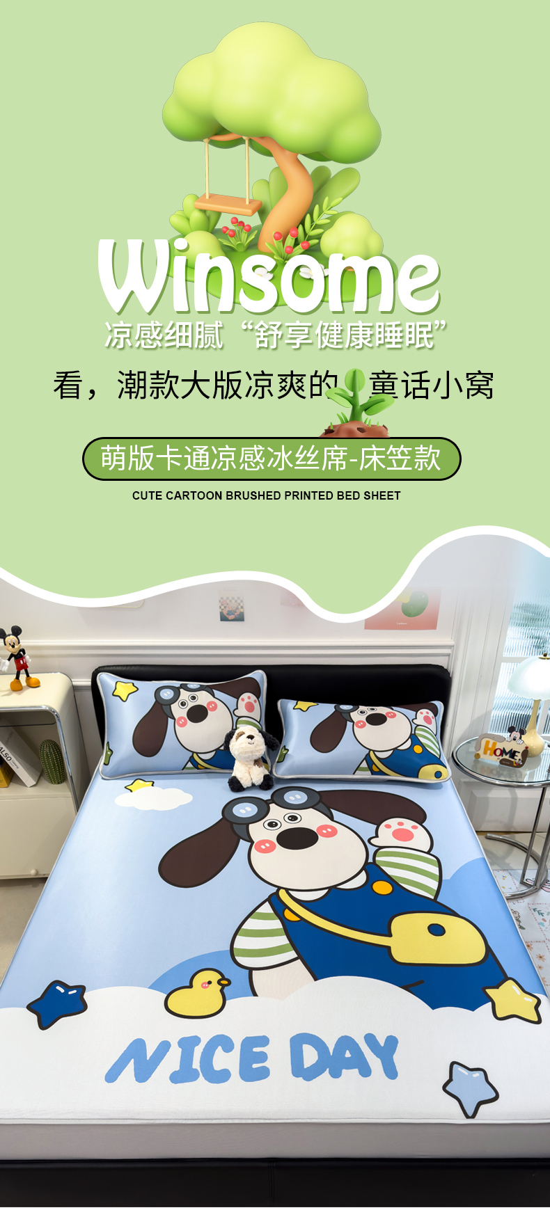 商品名称:(总)丝羽坊 2025新款大版印花冰丝凉席冰丝席碳光冰丝凉席-床笠款