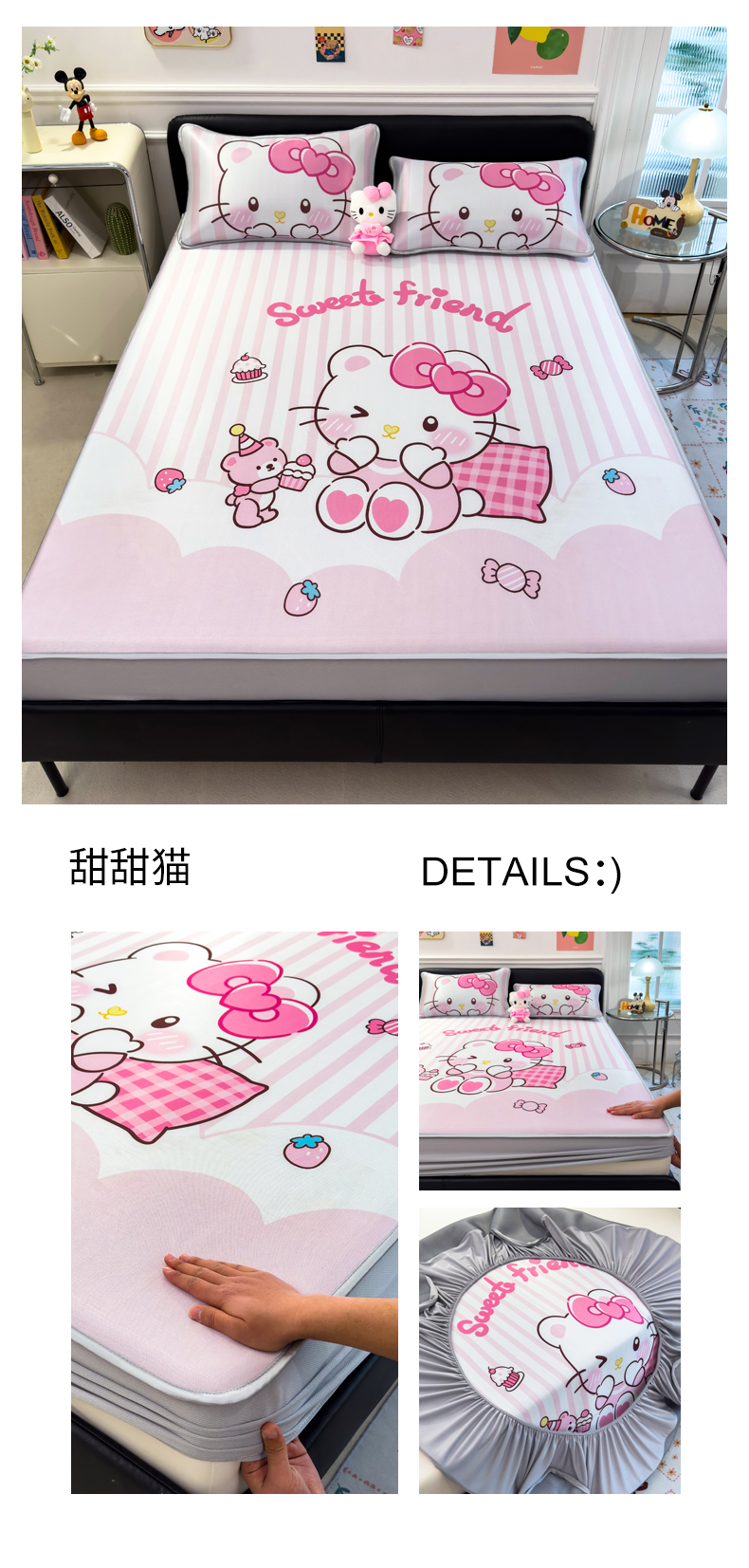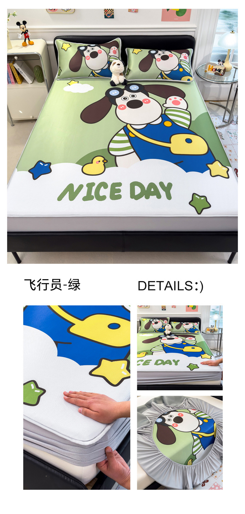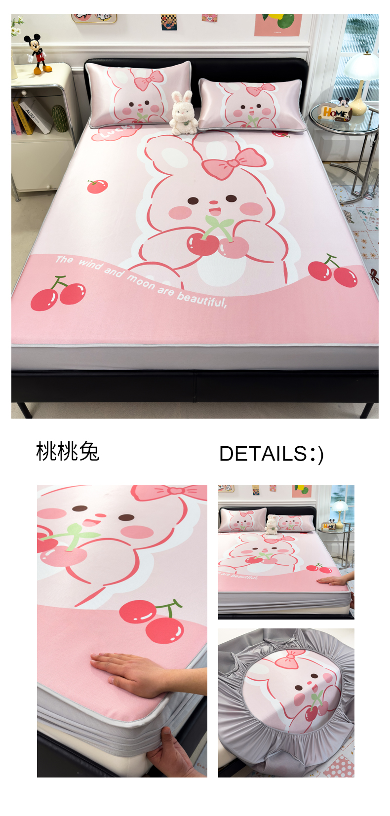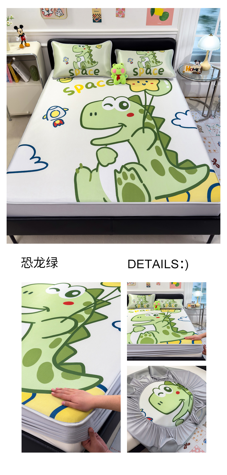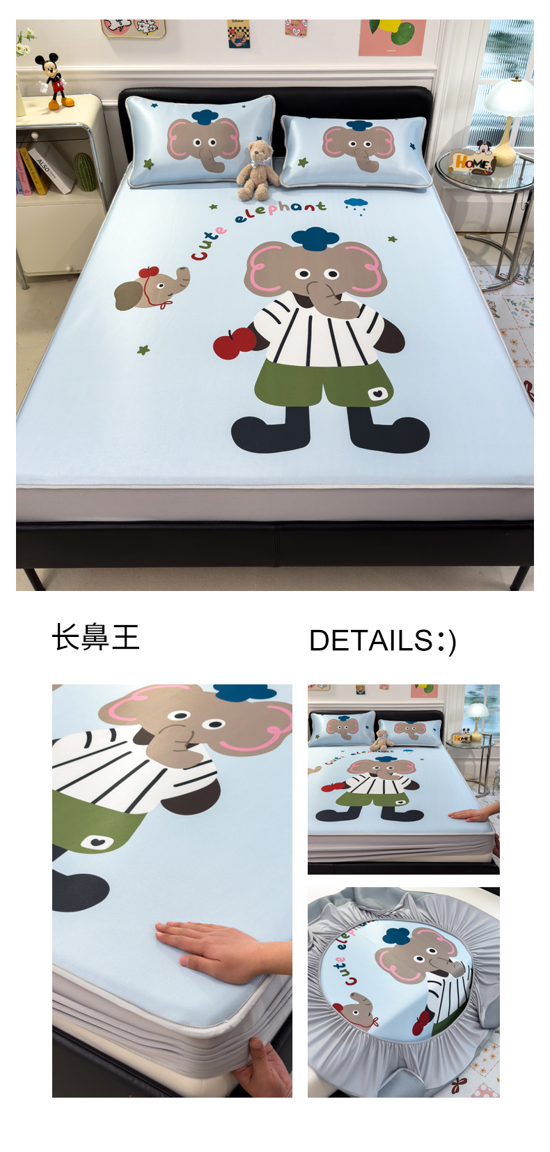 (总)丝羽坊 2025新款大版印花冰丝凉席冰丝席碳光冰丝凉席-床笠款