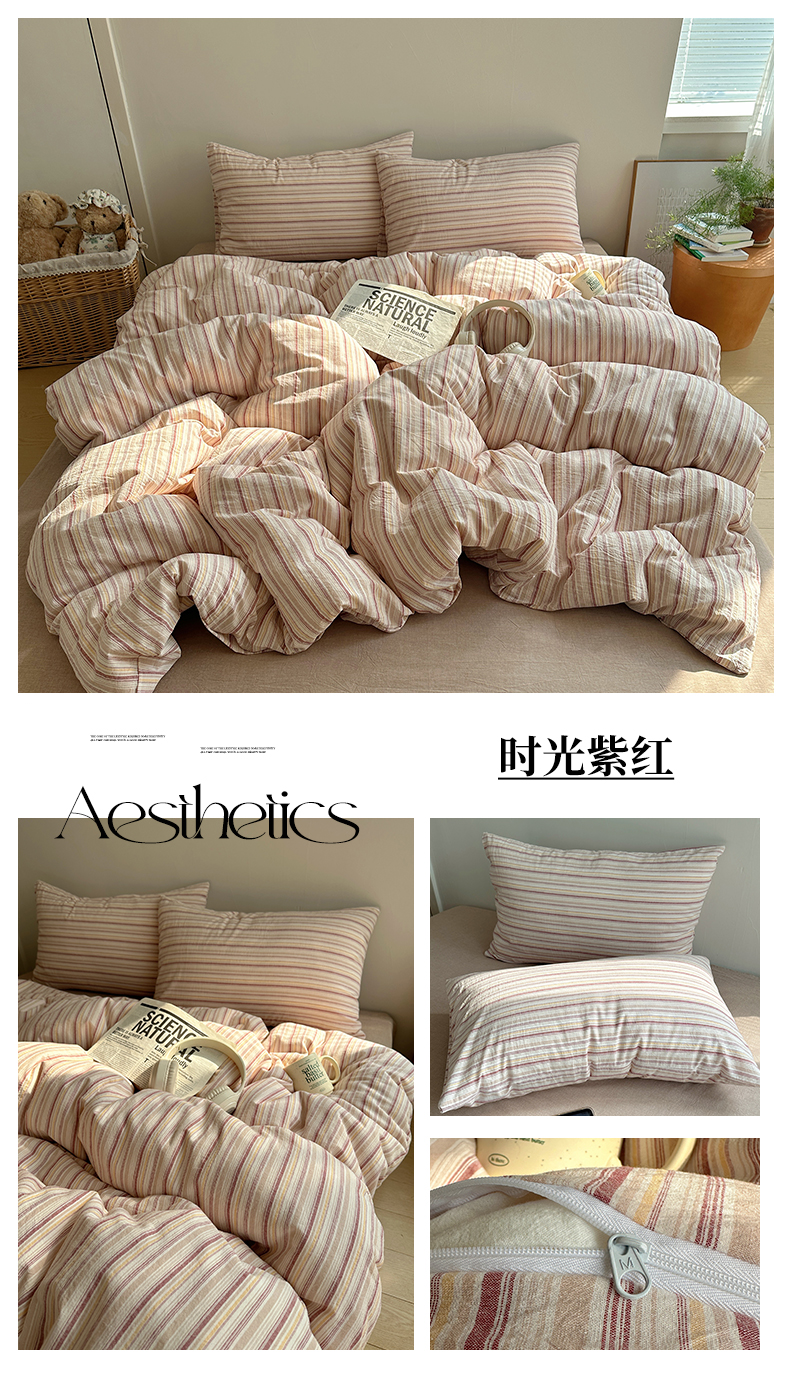 当前位置: 91家纺网 > 商品网购 > 床品套件 > 四件套 > 水洗棉四件套 > 艾咪-Amy ntmy 2025新款条纹款全棉色织水洗棉四件套 时光紫红