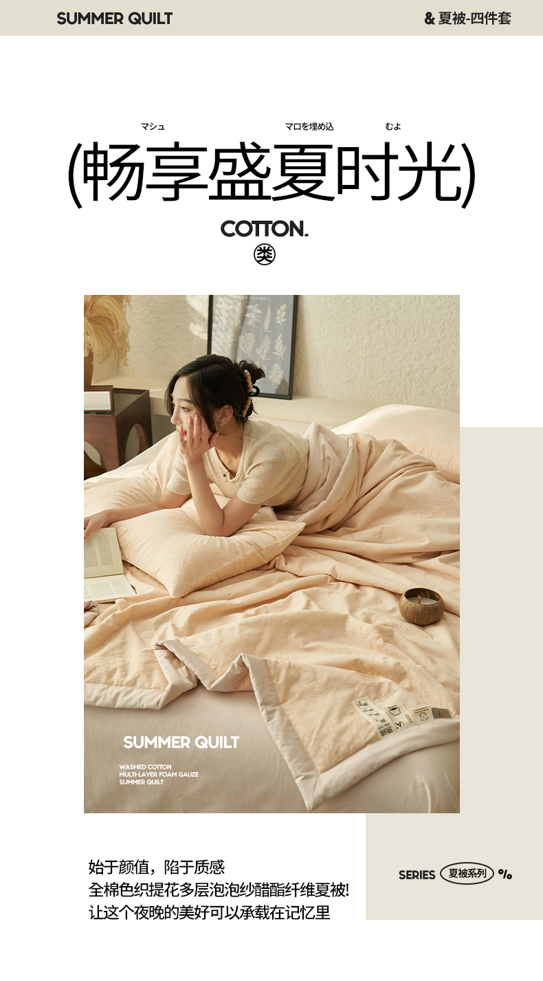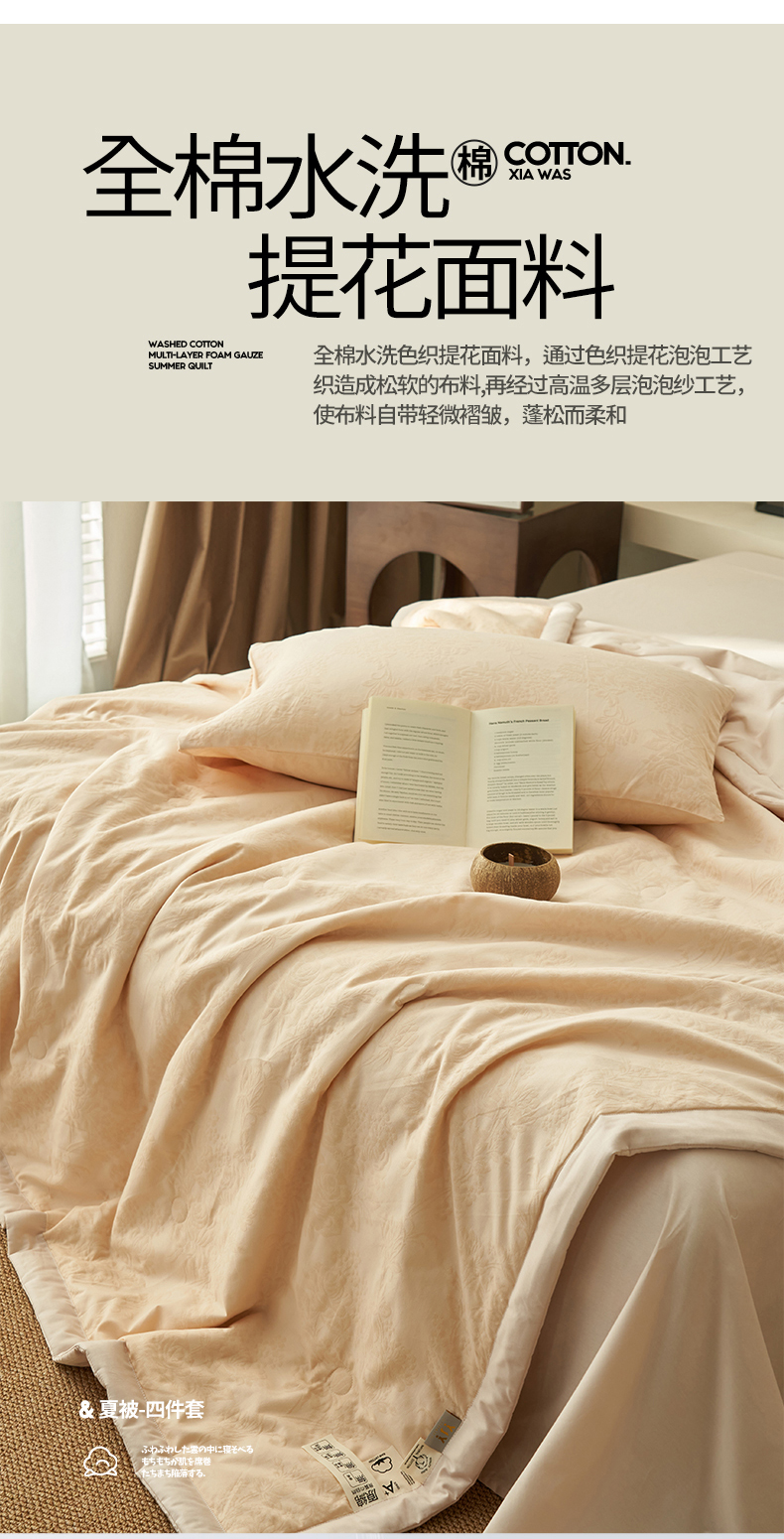 当前位置: 91家纺网 > 商品网购 > 床品套件 > 四件套 > 夏被四件套 > 一加一 2025新款全棉水洗色织提花多层泡泡纱娜雅醋酯夏被四件套 芳华-玛奇朵