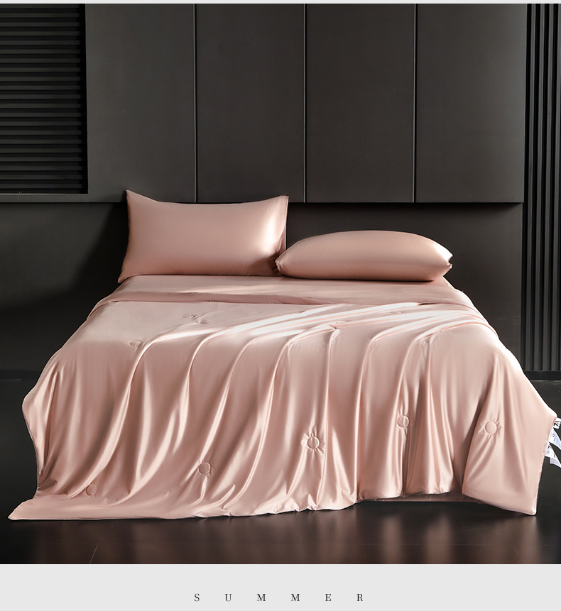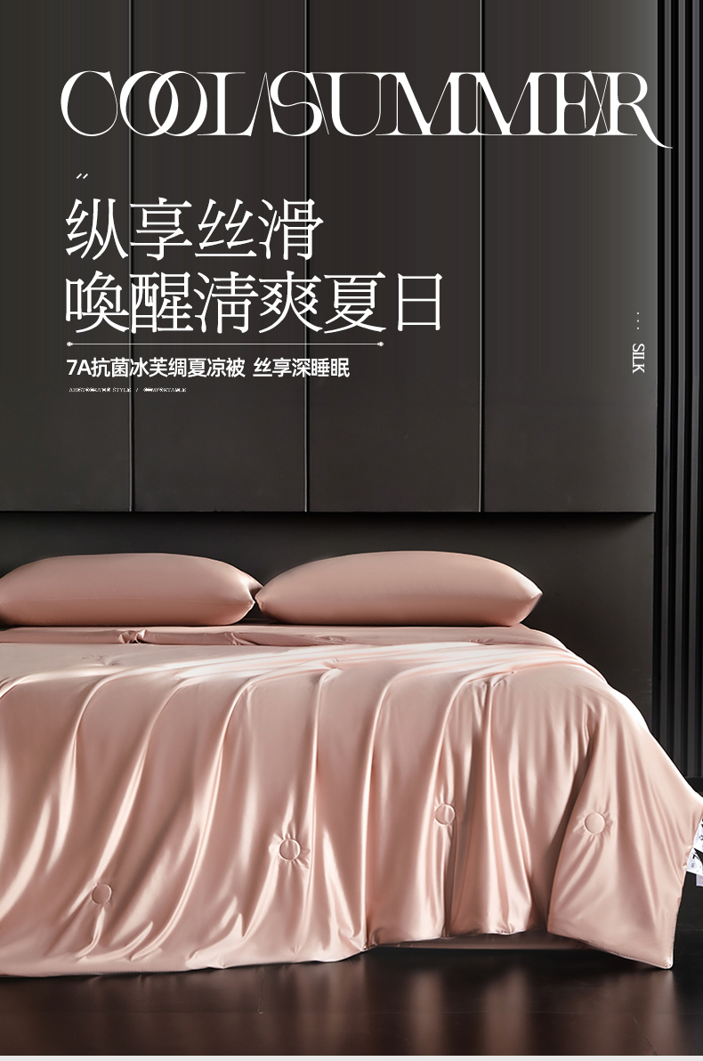 商品名称:雯豆家纺 2025夏季新品锦纶+氨纶高档冰丝凉感夏被空调被7A抗菌薄被芯 冰芙绸夏被-琥珀金