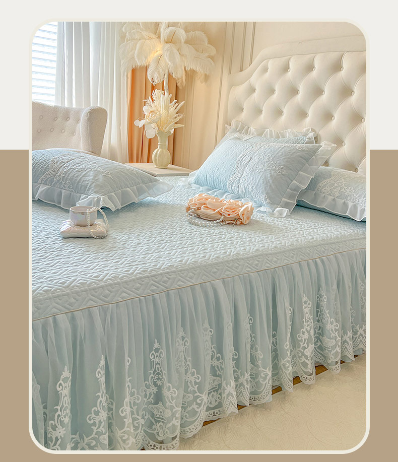 恋尚 2025新款木凉淳浪漫蕾丝床裙三件套-米朵 米朵-浅蓝