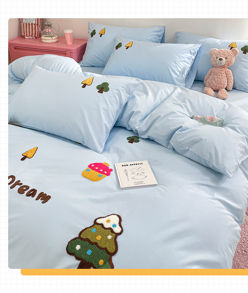 (总)买家秀热款花型不断货 母婴级A类ins风水洗棉四件套水洗棉毛巾绣四件套水洗棉床笠四件套提花绣花四件套,恐龙宝贝,花朵兔兔,面包小狗,奶油小甜甜,奶油芝士,兔伙伴,樱桃兔,优雅
